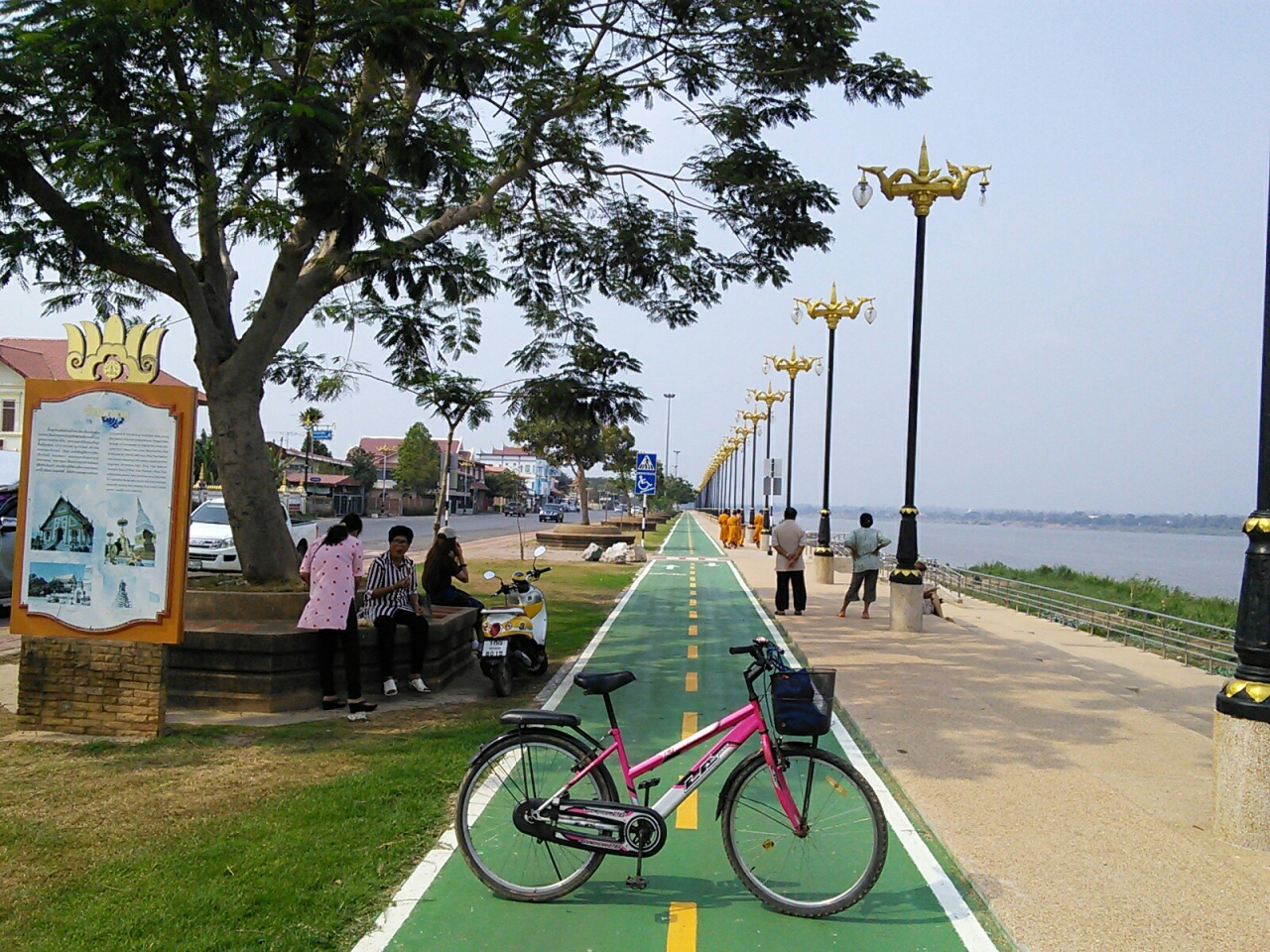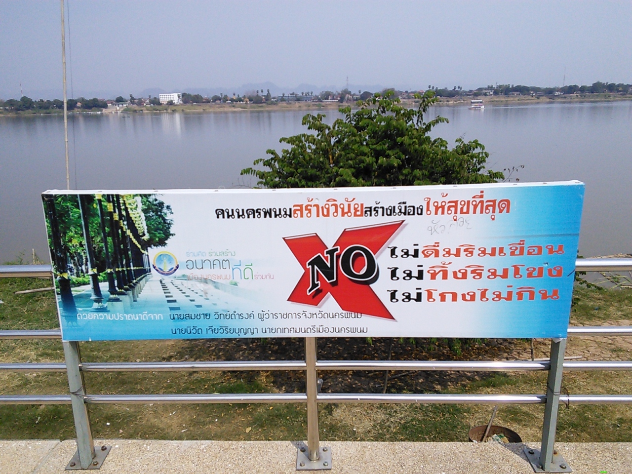 1年2ヶ月ぶりに訪れましたがメコン川沿いの遊歩道はやはりとても気持ちのいい場所です。タイでは最近自転車ブームでそれに関係してか緑色に塗られた自転車専用レーンができていました。夕方、メコン川を眺めながらのビールは格別ですがちょっと気になるものを発見しました。それはこの遊歩道での禁止事項が書かれた看板です。飲酒禁止、ゴミ捨て禁止、賭け事禁止。正確ではないかもしれませんがタイ人に確認したところ飲酒禁止は確かなようです。しかーし、みんな飲んでる。私も飲んでいましたが一応気を付けた方がいいかもしれません。