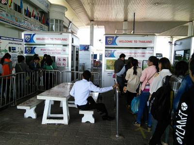 チケットは当日窓口で買います。9:40のチケットを買いました。バスは定刻どおり出発。満席で通路に立っている人が4,5人いました。ラオス側のイミグレまでは10分。出国審査を済ませその先で待っているバスに再び乗り込もうとしたところドアが閉まり走り去ってしまいました。一瞬焦りましたが周りにいた人曰く、次のバスがすぐ来ると。どうもタイの入国審査に時間がかかるので先に運んで行ったようです。と言われてもバスに荷物が載せてあるので気分のいいものではありません。イミグレ間を巡回しているバスがあるようでそれに乗りタイ側のイミグレへ。この時にバスのチケットを回収されました。私の荷物はイミグレの手前に置き去りにされていました。タイ側では荷物をすべて持って出国審査を受けます。出入国カードの記入が必要です。イミグレ通過後に荷物をX線に通します。今回はバスの車掌が全員が入国審査を終えるのを見届けていたのでバスに乗りそびれることはないと思います。両イミグレを通過するのに要した時間は45分。そして10分かけ10:45にムクダハンのバスターミナルに到着しました。とくに問題はなく簡単に国境越えできます。- 旅行時期