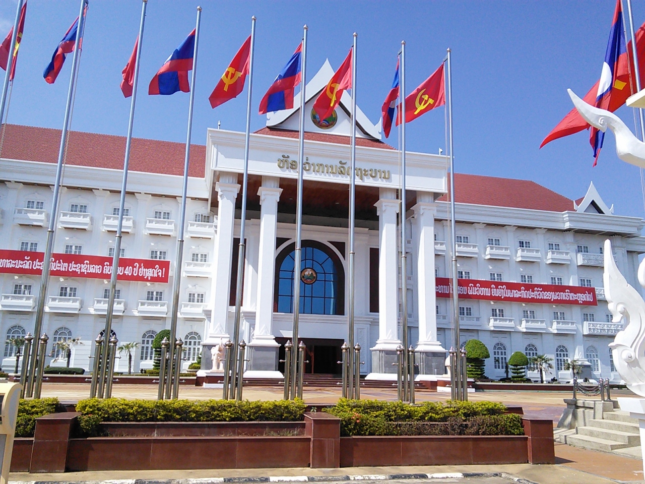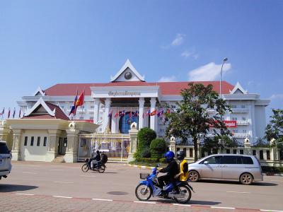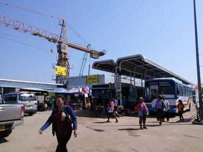 新しいバスターミナルに建て替えのため現在大規模工事中。すぐ南のクービエン通り沿いの臨時バスターミナルからタイへの国際バスや市バスは変わりなく運行されています。友好橋への14番のバスはすぐ近くですが30mほど離れた南側から発車します。周辺の人に尋ねればすぐわかります。