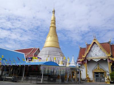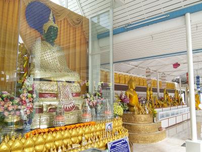 ビルマ風寺院。どーんと目立つパゴダはヤンゴンにあるシュエダゴン パゴダを真似て作られたもの。もちろん規模は全然違いますが…。ビルマ風と言われてもタイとの違いはよくわかりません。他にはガラスケースで覆われたエメラルド色の仏像もあります。