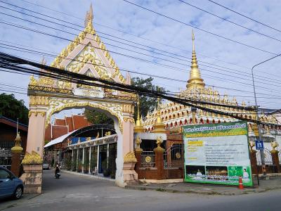 メーソートで1番大きなお寺のようです。確かに入口にある大きな仏塔は迫力があるし、入口正面にある壁がキラキラの礼拝堂もちょっとおしゃれ。仏像も数多くあり賑やかです。しかし私のイチオシは境内右手奥にある薬草サウナ。薪を燃やす煙が漂っていたら営業中です。もちろん誰でも利用可能、20B。19:00頃までやっています。
