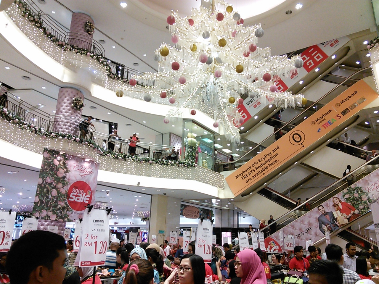 やはりちゃんとしてます。隣りのローカル系デパート、プルタマコンプレックスと比べるとその差は歴然です。ちょうど1階吹き抜け部分では消費者に日頃の感謝の気持ちを示すファミリーデーのセール中でものすごい人だかりができていました。