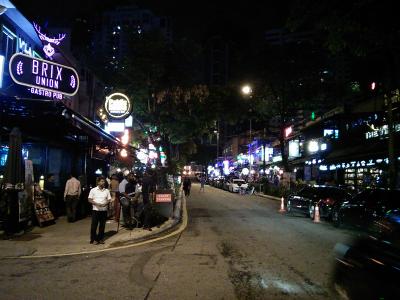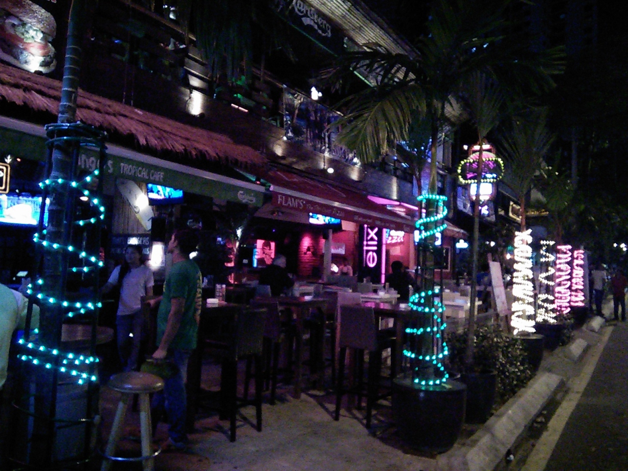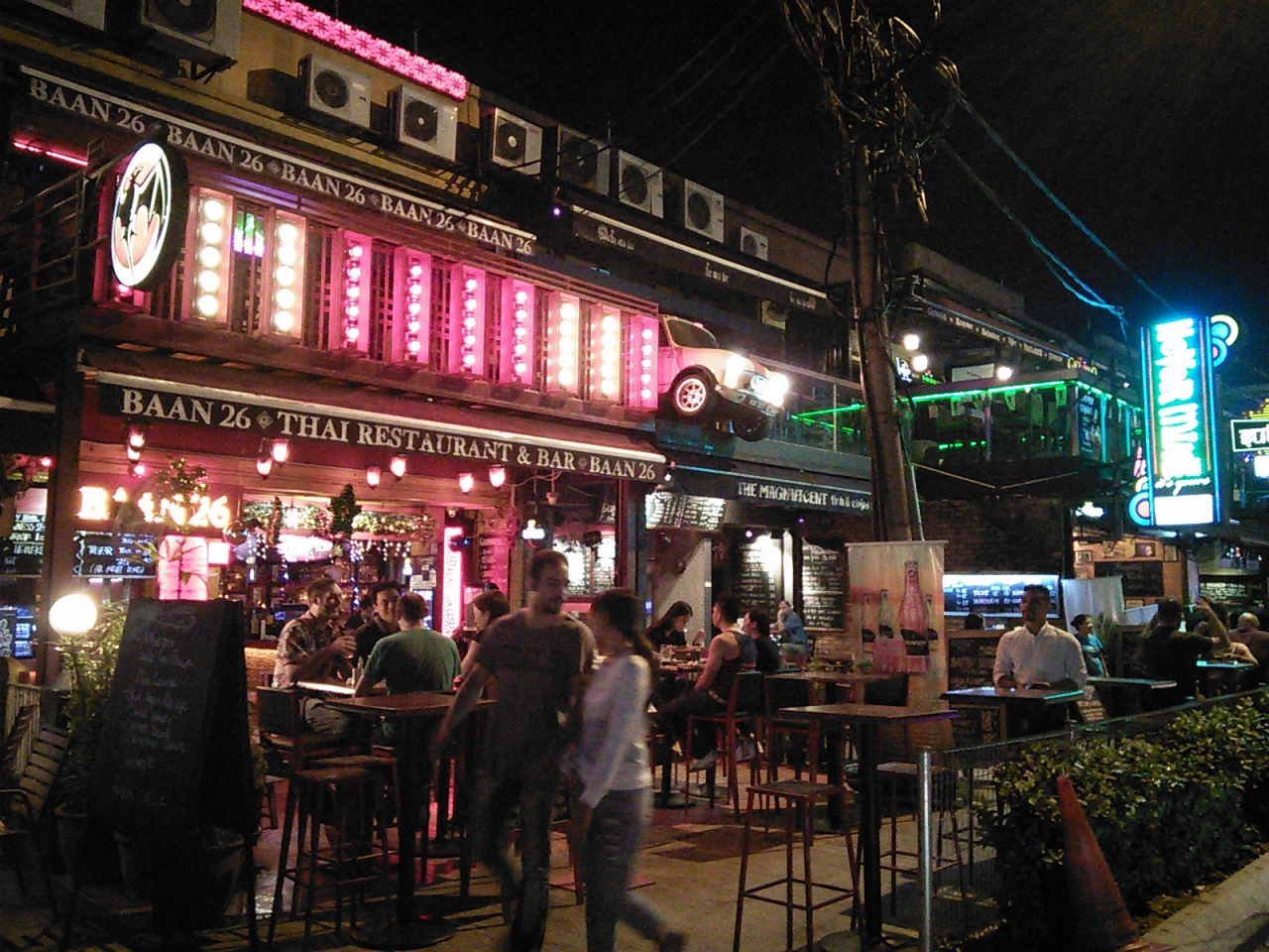 アロー通りの東端との三差路を成すチャンカット ブキッビンタン通りを北に向かって下っていくと道の両側にバーが並ぶエリアになります。アロー通りの屋台街の様な喧騒はなく幾分落ち着いた感じ。午後8:30、まだ時間が早かったせいか全体的に客の入りは2~3割程度。盛り上がるのはこれからでしょうか、皆まだ静かに飲んでいました。やはりこの様な店は好みに合うのか客の多くは欧米人でした。