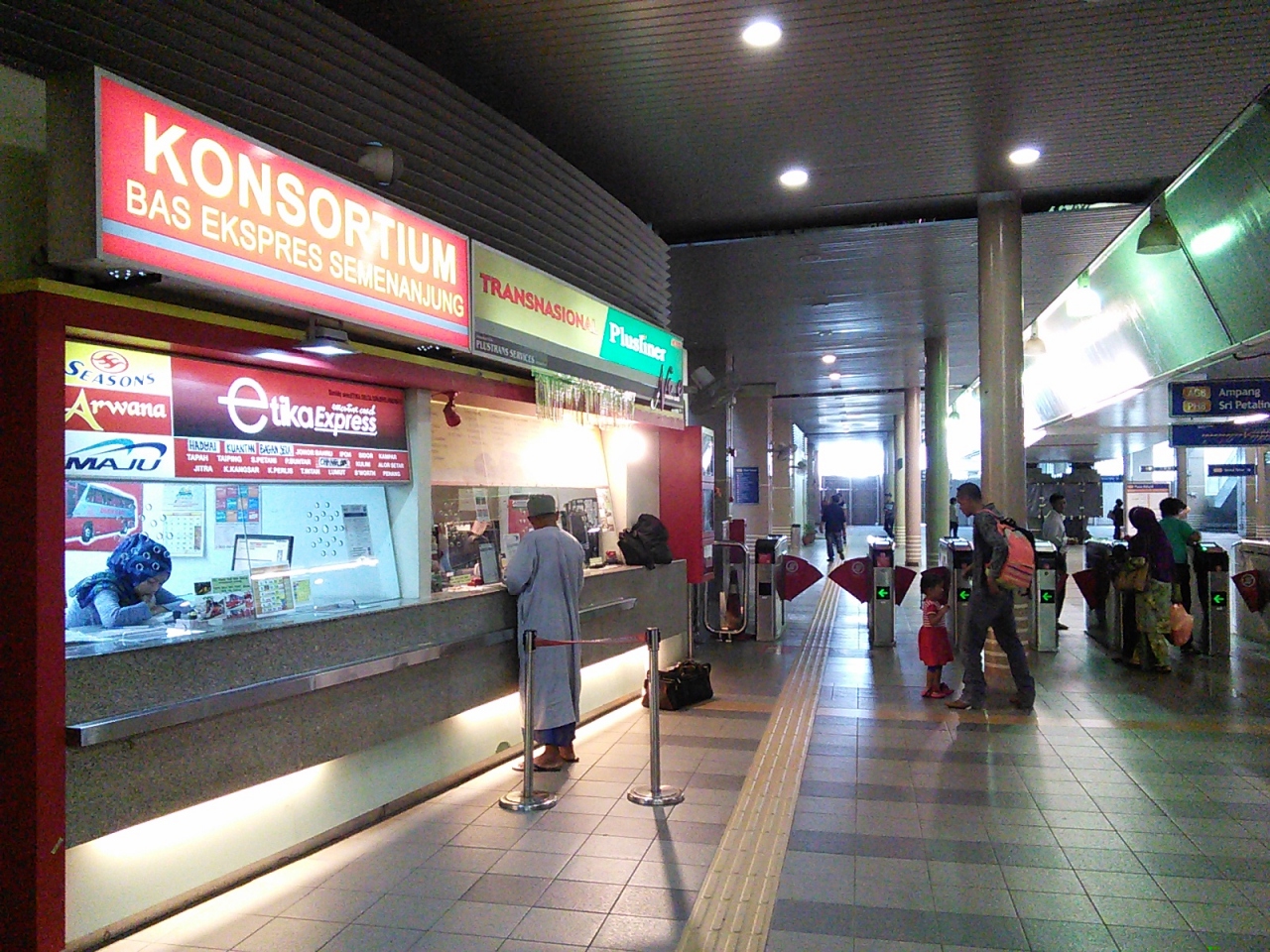 プドゥセントラルバスターミナルに隣接しておりチャイナタウンからも近いです。改札横にバス会社のチケットカウンターがあります。以前プドゥセントラルから発着のあったハジャイ行きの国際バスがTBS(Bandar Tasik Selatan駅横のバスターミナル)に移りました。当然TBSまで行かないとチケットは買えませんがこの改札横のカウンターでもチケットが買えます。バスに乗るにはTBSまで行く必要がありますが予約をする際に利用すれば時間とお金の節約になります。ちなみにプラザラキャット駅からTBSまでは7駅、1.7RMかかります。