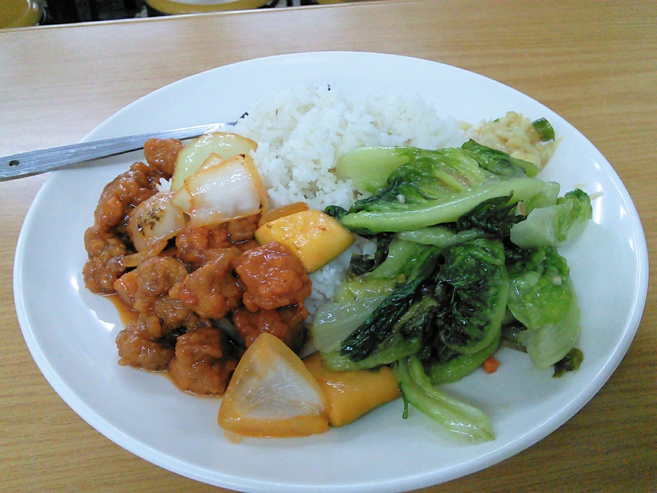 おすすめなのが酢豚。マレーシアでは豚肉を食べる機会は制限されてしまうので貴重な食材でもあります。例えば酢豚と野菜の2種をごはんに盛り、これでなんと4RM(or4.5RM)です。おかずは自分で盛れるので多目にできます。多過ぎると追加料金になるのでその加減さも楽しめます。飲み物もチャイニーズティー(アイス)なら0.5RM。