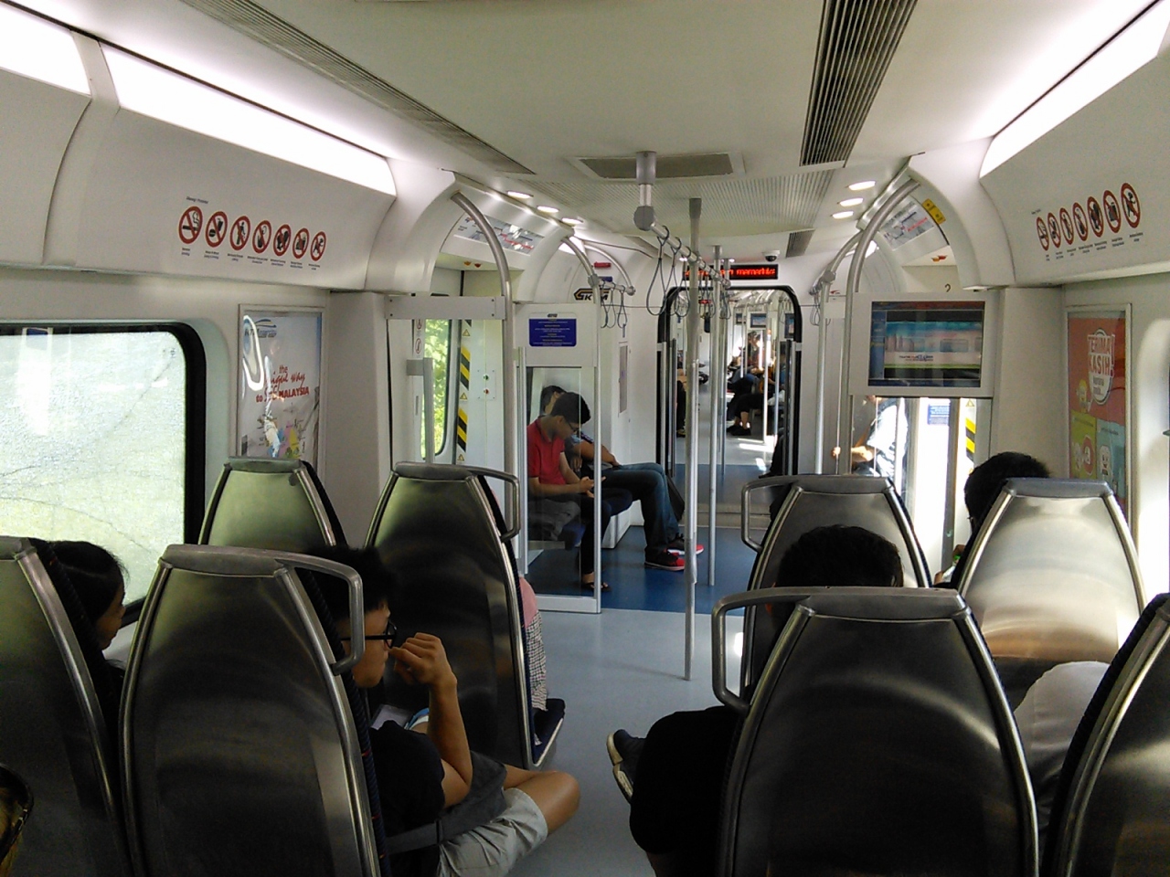 車内は清潔で涼しく快適そのもの。車内の注意書きには飲食禁止(水はOKのようです)、チューイングガム禁止などの他にキス禁止の表示も、カップルでいちゃつくなと言うとこでしょう。マレーシアらしいです。- 旅行時期