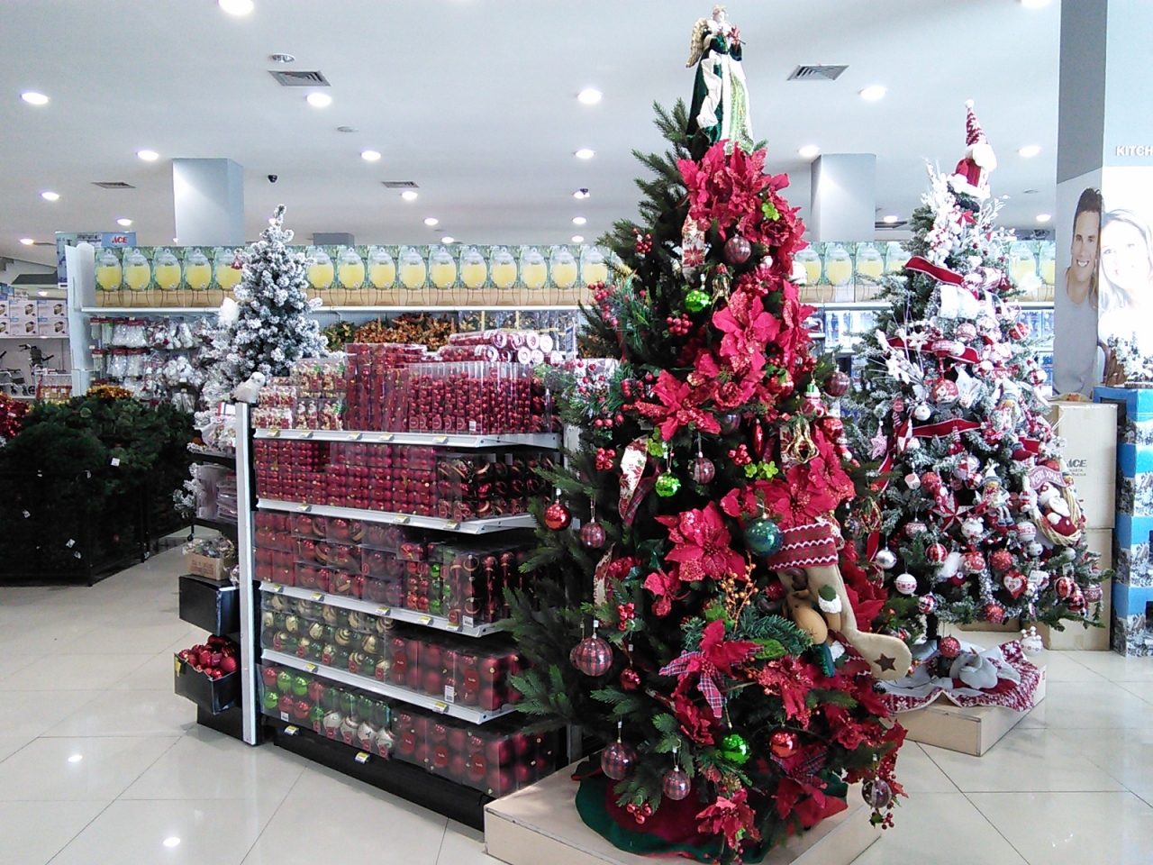 入口には早くもクリスマス商品が…、ツリー飾りの豊富さも半端あません。- 旅行時期