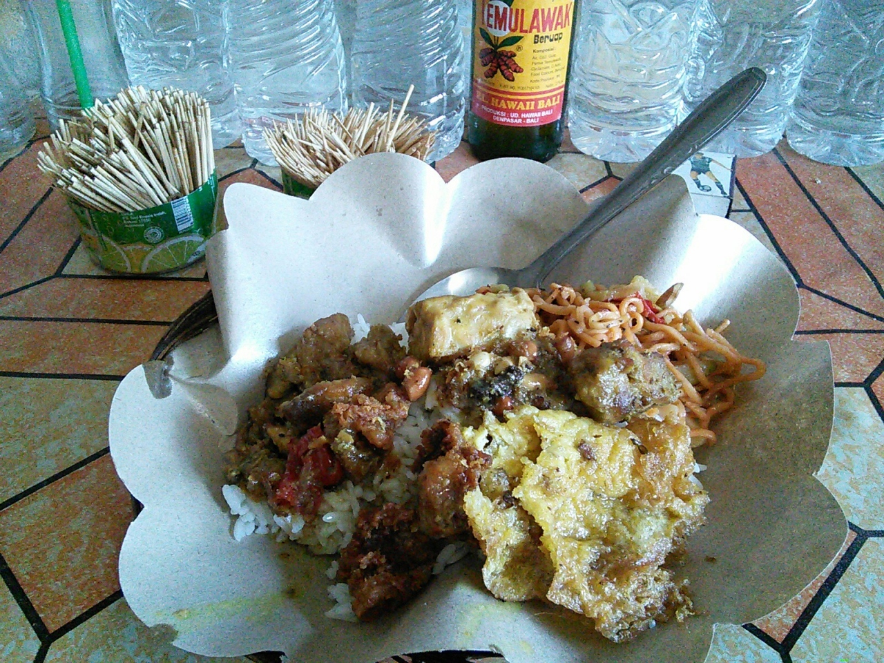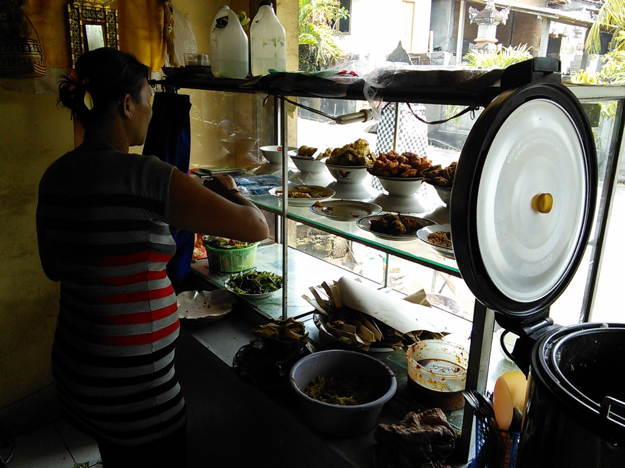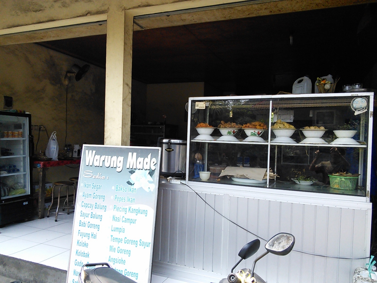 Jalan Raya UbudからJalan Sugriwaを100mほど入った右手にあるモスリム系のワルンです。ナシチャンプルの店ですが特徴はご飯が普通の白飯かナシクニン(ターメリックとココナッツで炊いた黄色いご飯)か選べることです。肉を入れずに煮卵と野菜炒めならRp10000で食べられます。店の雰囲気とは違いなかなかおしゃれな盛り付けでサンバルも辛過ぎずちゃんと風味があり上品な味わいです。安く手軽に食べられるのでランチにぴったりだと思います。