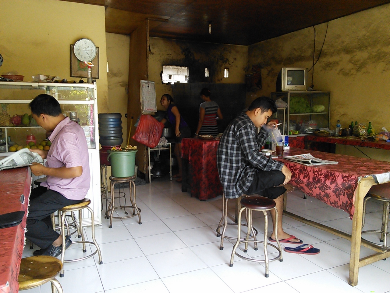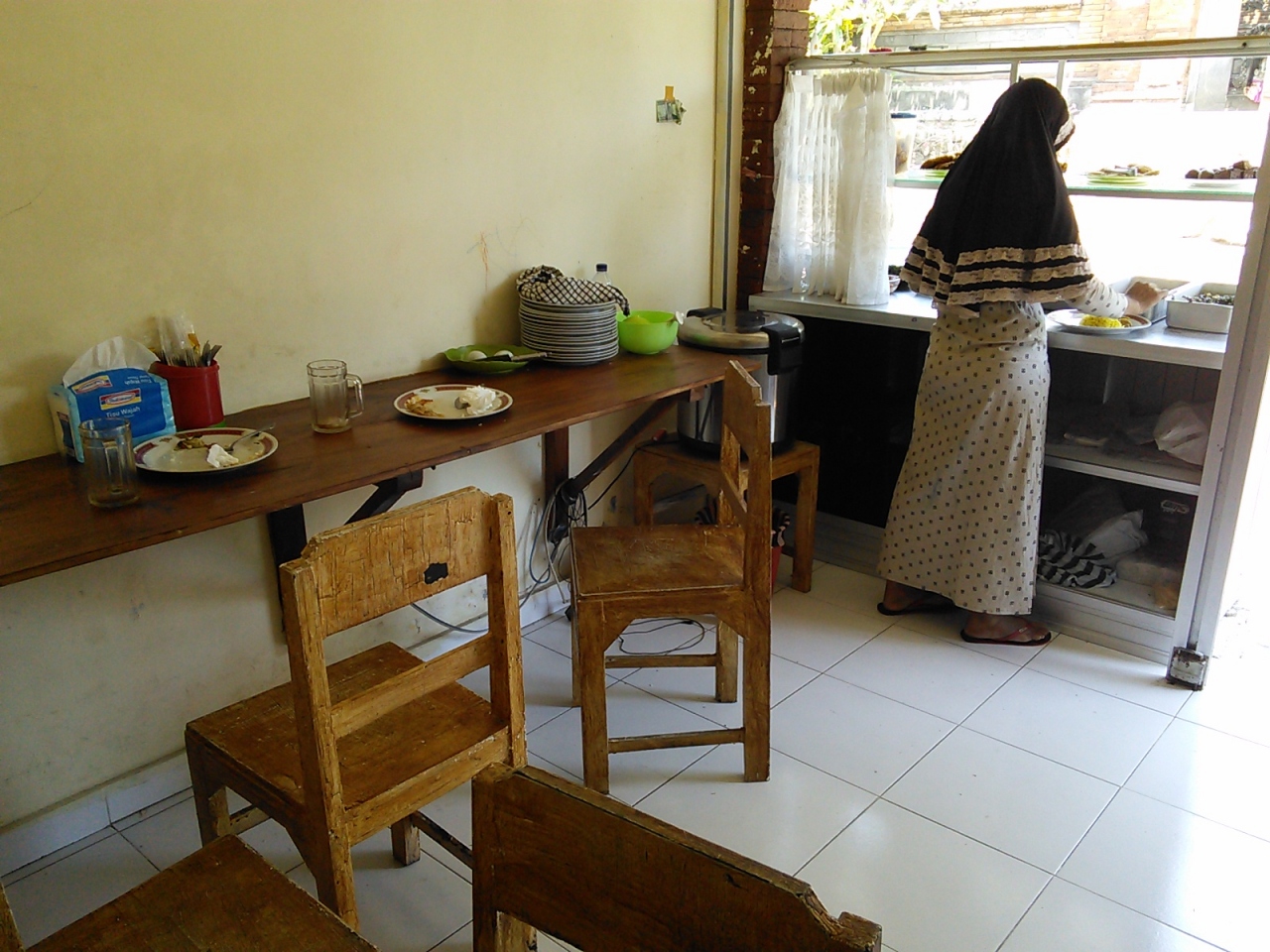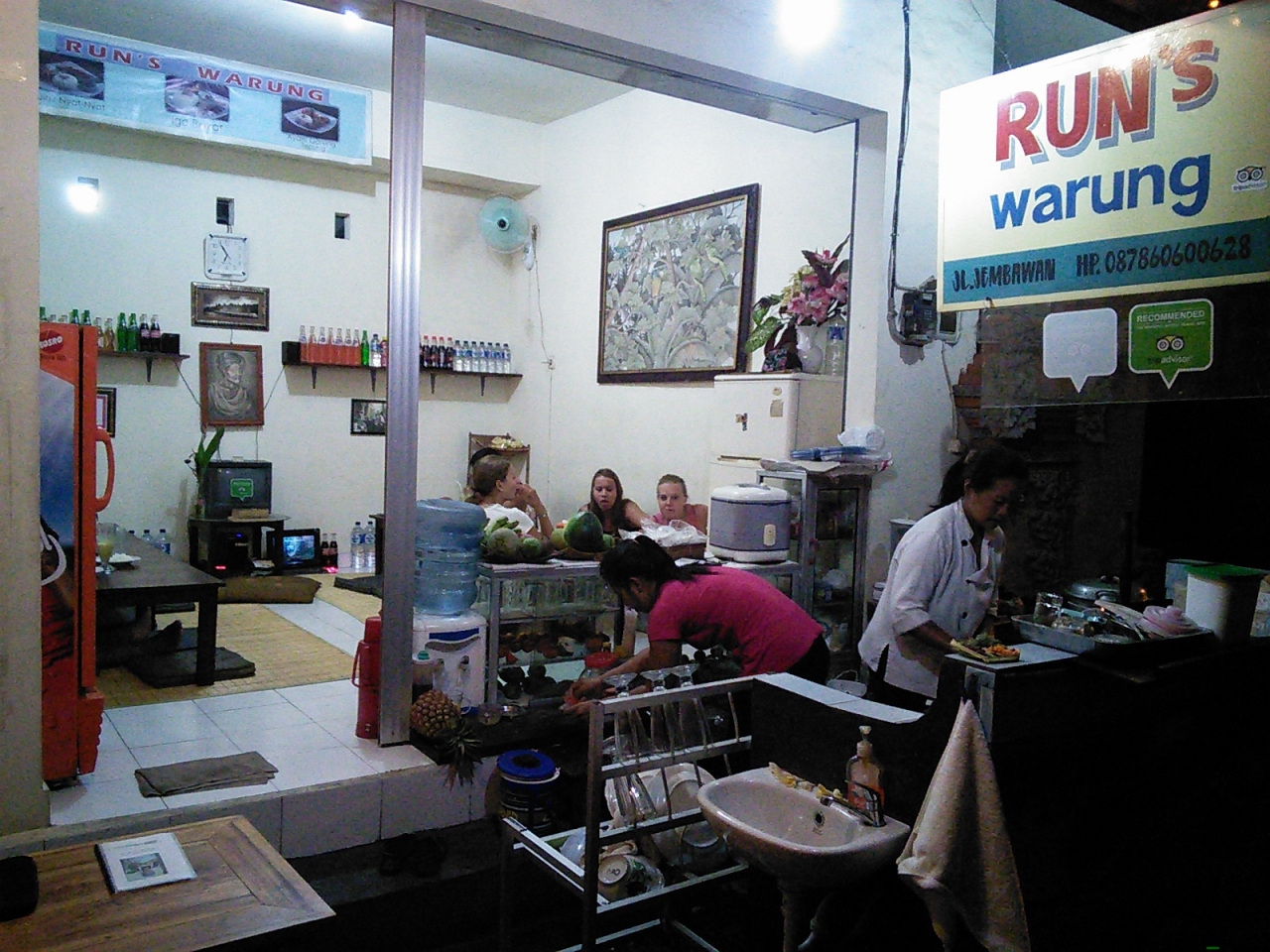ジェンバワン通りにある数少ないワルンの1つです。かなり小じんまりしていて一見ローカル風ですがツーリスト用のレストランです。トリップアドバイザーにも載っており客層はほぼ外国人旅行者。値段がやや安めのためかいつも混んでいます。と言っても5~6人いれば混んでいるように見えますが…。