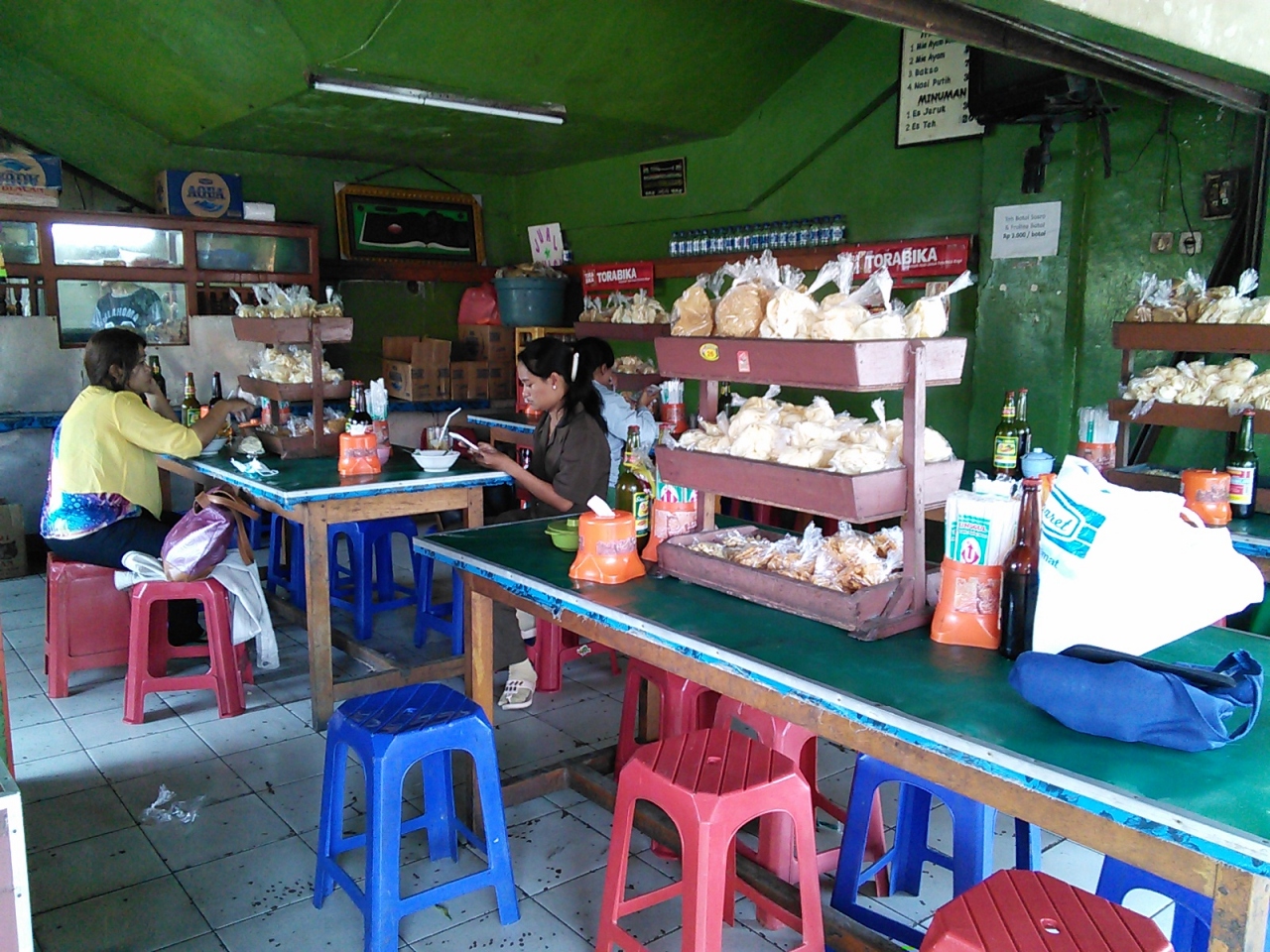 メニューはBubul Ayam(鶏のお粥)、Nasi Soto(ライススープ)、Sayur Plecing(野菜のサンバル和え)、Rujak(フルーツの甘辛ソース和え)などがありますがそう多くはありません。私はTipat Soto(ティパット ソト)Rp10000をオーダー。ティパット(ロントン)と呼ばれる蒸して固めたご飯にダシ汁をかけ鶏肉、野菜、ピーナッツをトッピングしたもの。食事というよりはおやつに近い軽食です。小腹が減ったときなどにはぴったりです。おそらく洒落たレストランにはないメニューだと思います。