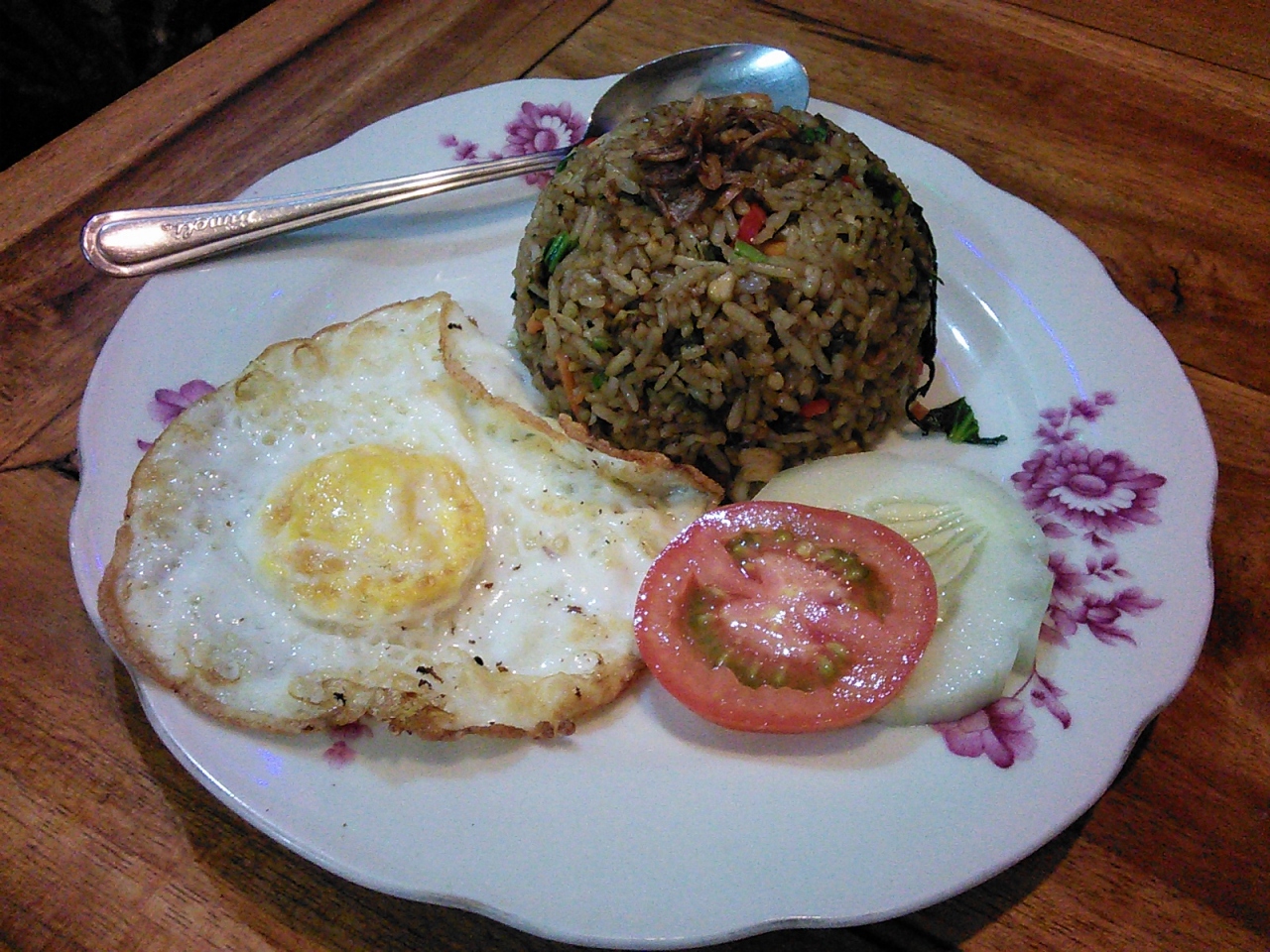 で、ナシゴレン(Rp12000)を食べました。ちゃんと目玉焼きも付いていて盛り付けもきれいでなかなか好感触。味もおいしかったですが量が少ない。しかもチキンかベジか聞かれたのチキンにしましたが鶏肉が小さく目を凝らして探さないと分からないレベル。なのでこの値段なのでしょうか。全然もの足りませんでした。もうちょっと満足できればまた行ってもいいかなと思いますが残念です。