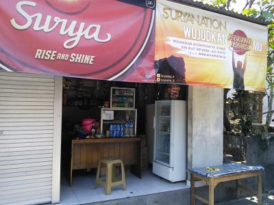 商店の名前はワルン ミニですが看板がありません。日除け用のシートの文字は紛らわしいですが関係ありませんのでご注意を。- 旅行時期