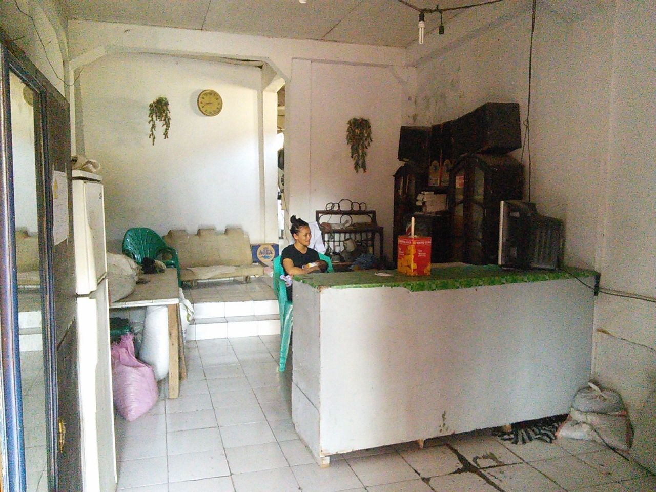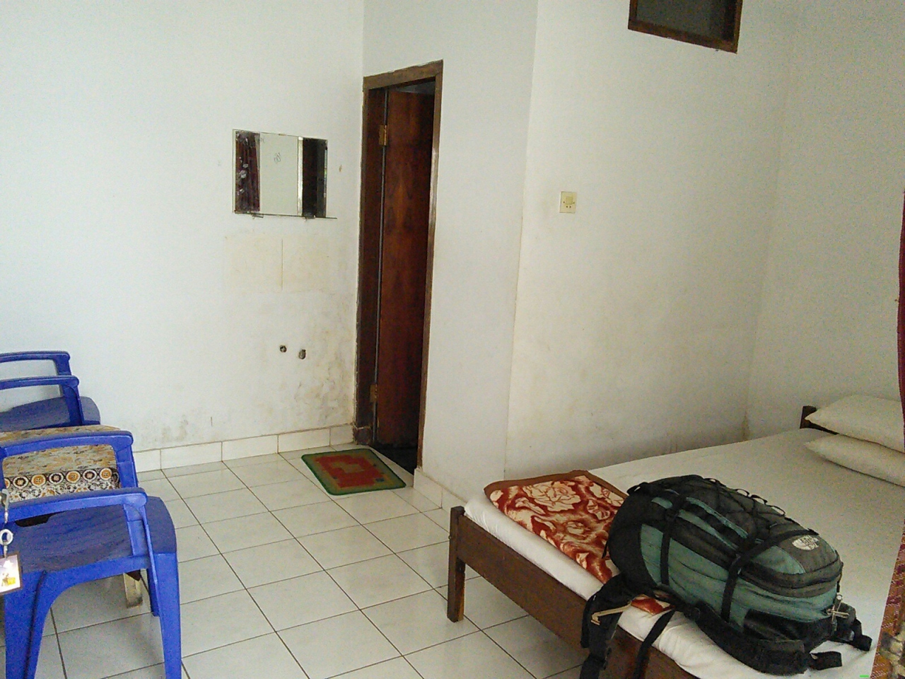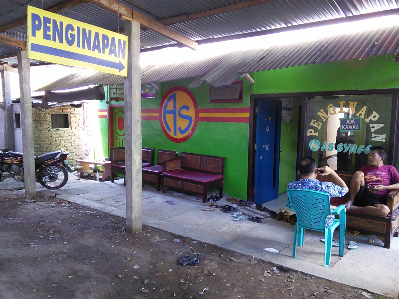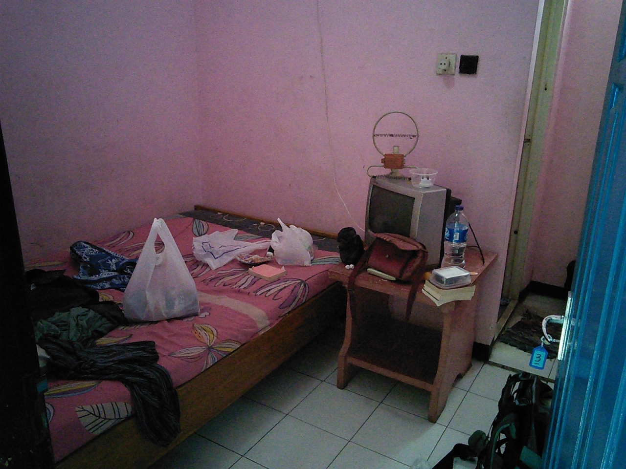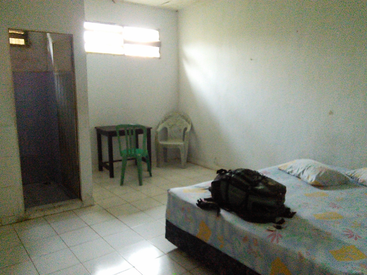 ペルニの客船でBitung港に着き、オジェック(バイクタクシー)のおっさんに連れていかれた宿。場所がまったく分からず2万Rpで行くと言われましたがどうも高いと思い渋っていたら1万Rpになりました。実際歩ける距離でした。とにかく安い宿と言っておいたので連れていかれたところはいい感じの安宿。料金はおっさんの言った1泊5万Rpではなく7万Rp。一応文句はいいましたが十分安いので決めました。