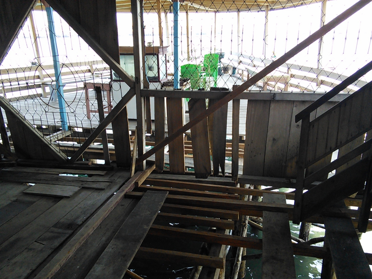 部屋はいたってシンプルですが客室は全て海の上なので波の音を聞きながら眠ることができます。船の舳先部分にあたる共有スペースからの眺めはまさに絶景。心地よい風が吹き抜けなんとも居心地のよい空間です。こんな料金でこんなホテルに泊まれんなんて並のリゾートにも勝るとも劣らずの最高のホテルだと思います。