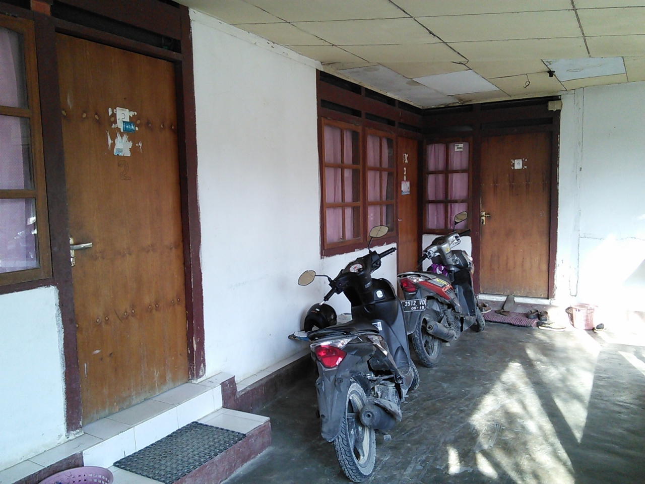 ジャカルタやジョグジャ方面、またバリ島方面への長距離バスが発着するブングラシーバスターミナル近くにある地元系のホテルです。場所はバスターミナル南東側の出口を出て右に10mほど行くとバイクの駐輪場となっている路地(バスターミナルの敷地とは塀を挟んで隣り合っています)があり、そこを入っていくとホテルが4~5軒かたまってありその中のひとつです。