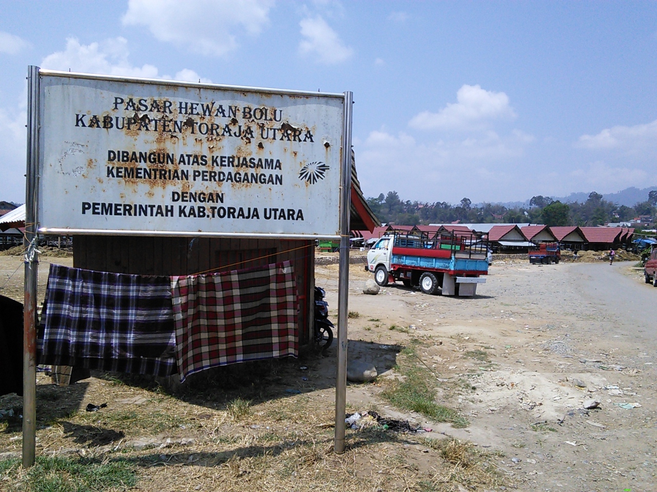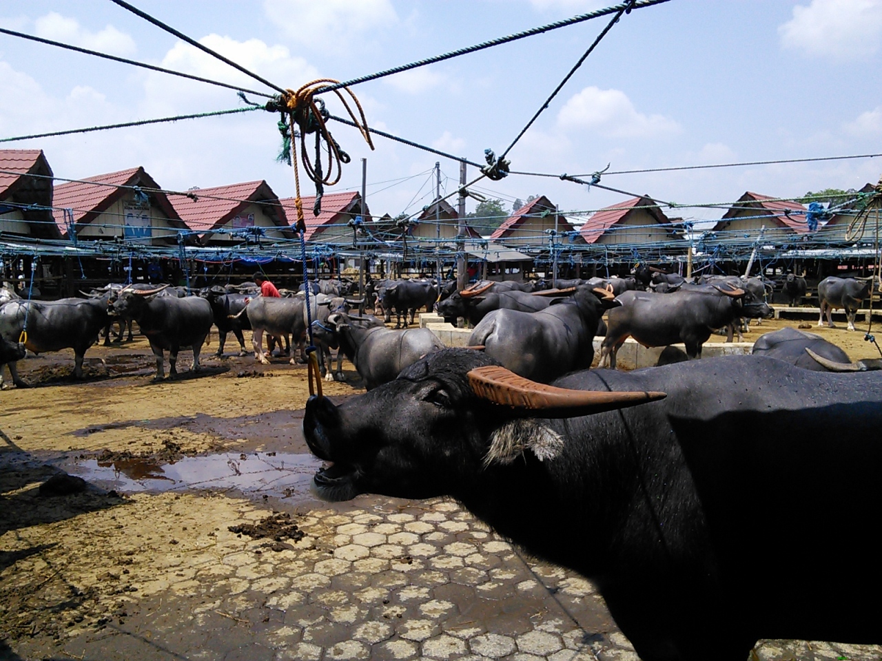 ランテパオ市街北東2kmほどにあるボル市場の南側に隣接するペテペテバスターミナル横の広場で開かれます。特に盛り上がるのは6日に1度のマーケットのようですがと日程的に合わず、普段でも小規模ながら開かれていると聞いたので行ってみました。広場の奥の牛舎に囲まれた場所に、それでも何十頭の水牛がいました。6日に1度のマーケットの時には何百頭も集まるそうです。さぞかし壮観な眺めだと思います。