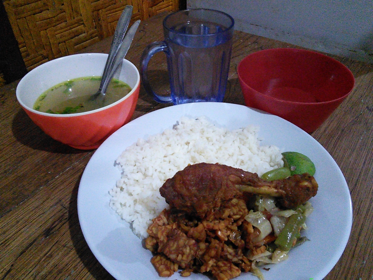 ナシチャンプル(アヤム)を食べましたが鶏肉はもちろん、テンペゴレンと野菜炒め、スープが付いて見た目もなかなかおしゃれです。アヤムは割高なのにこれでRp15000は大変お得です。味もおいしいです。他にはナシゴレンRp13000~、ミーゴレンRp13000~、ガドガドRp13000などがあります。週末の夜は特に混み合っています。- 旅行時期