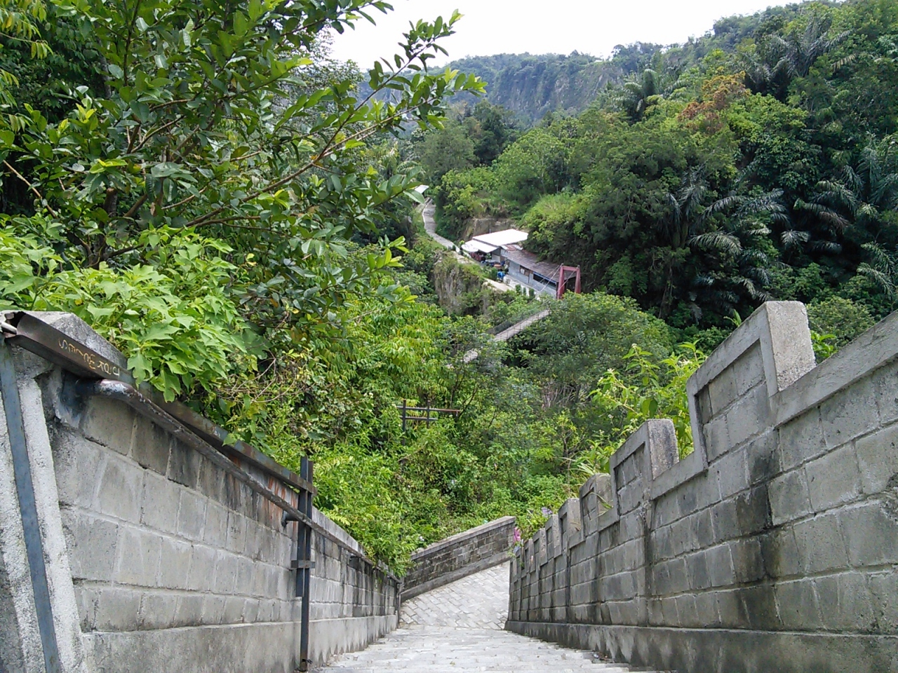 丘の途中に料金所があります。1人4000ルピア。払いたくない人は料金所の手前50mほどに右側にある斜面を登る階段があり、これを行けば上の道にショートカットでき料金所をスルーできます。ただ階段の途中で料金所から見えてしまうので足早に通り過ぎて下さい。