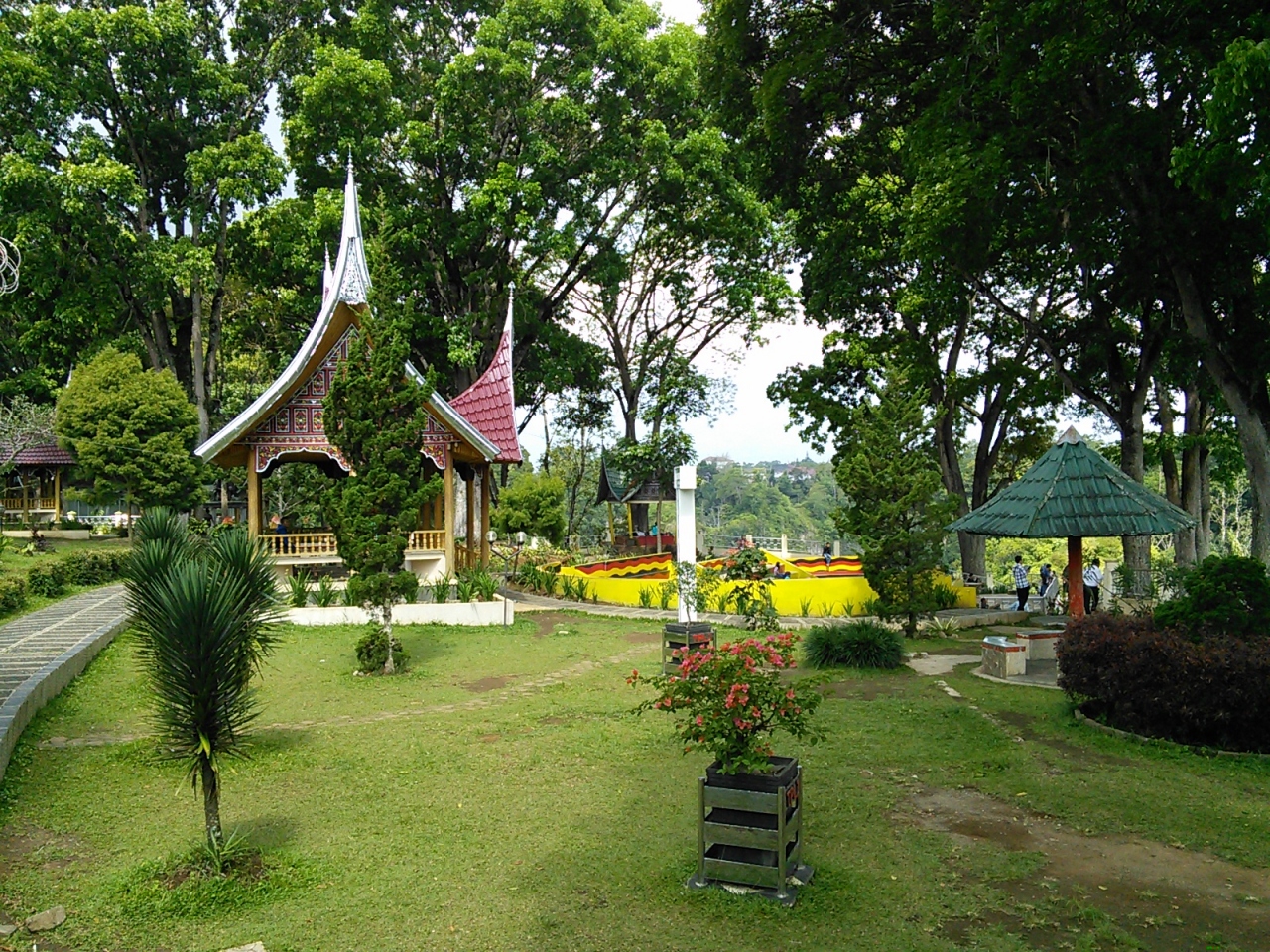 ミナンカバウ族の伝統家屋の屋根を模した東屋が点在するかわいらしい公園です。ガライ シアノッ渓谷の雄大な眺めがすばらしいです。公園内西側、土産物屋を抜けた先に展望台があるのですが木が邪魔して半分しか景色が眺められないのが残念。