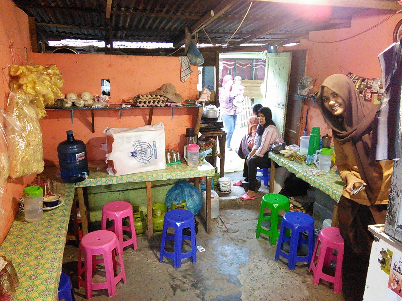 コック要塞西側にある大きな病院の北側の通り(Jl.Merapi)に掛かる別棟との渡り廊下の下付近にあります。ガラス窓越しに並んだおかずの下の「KEDAI NASI uni JA」の看板が目印です。