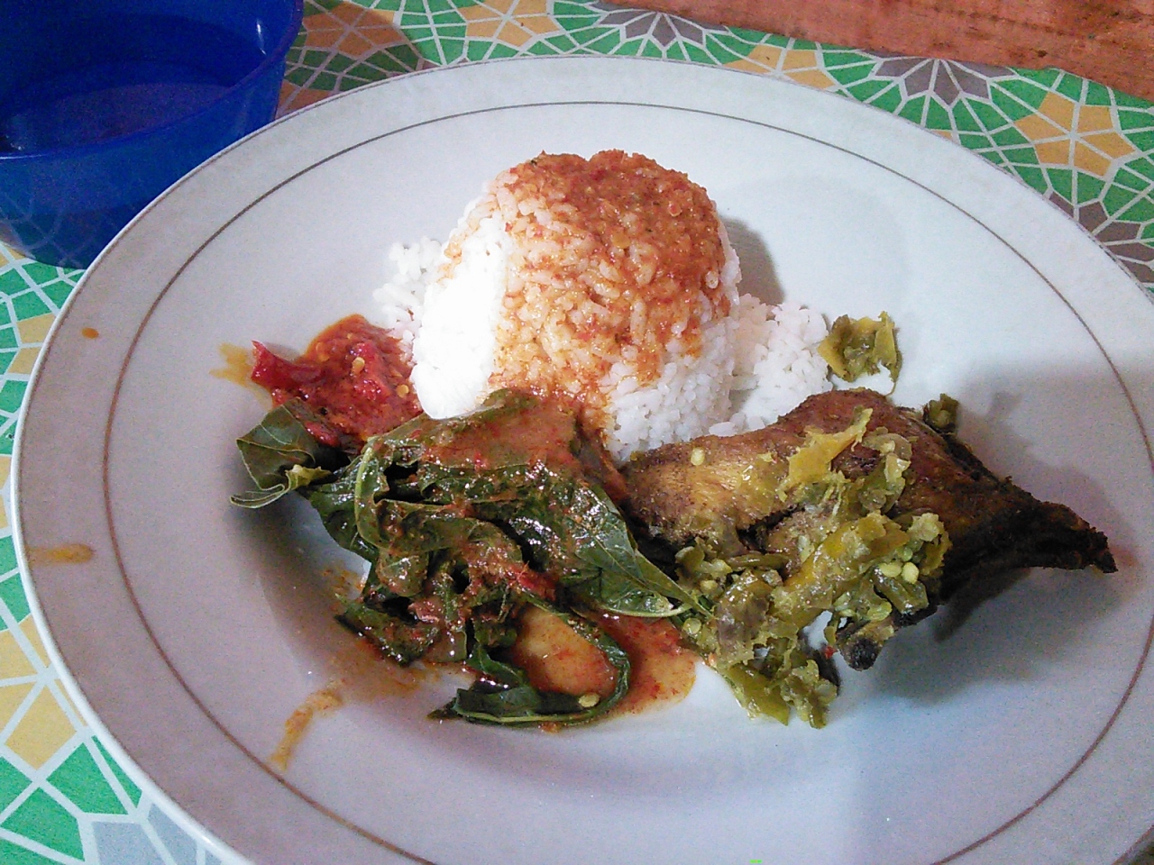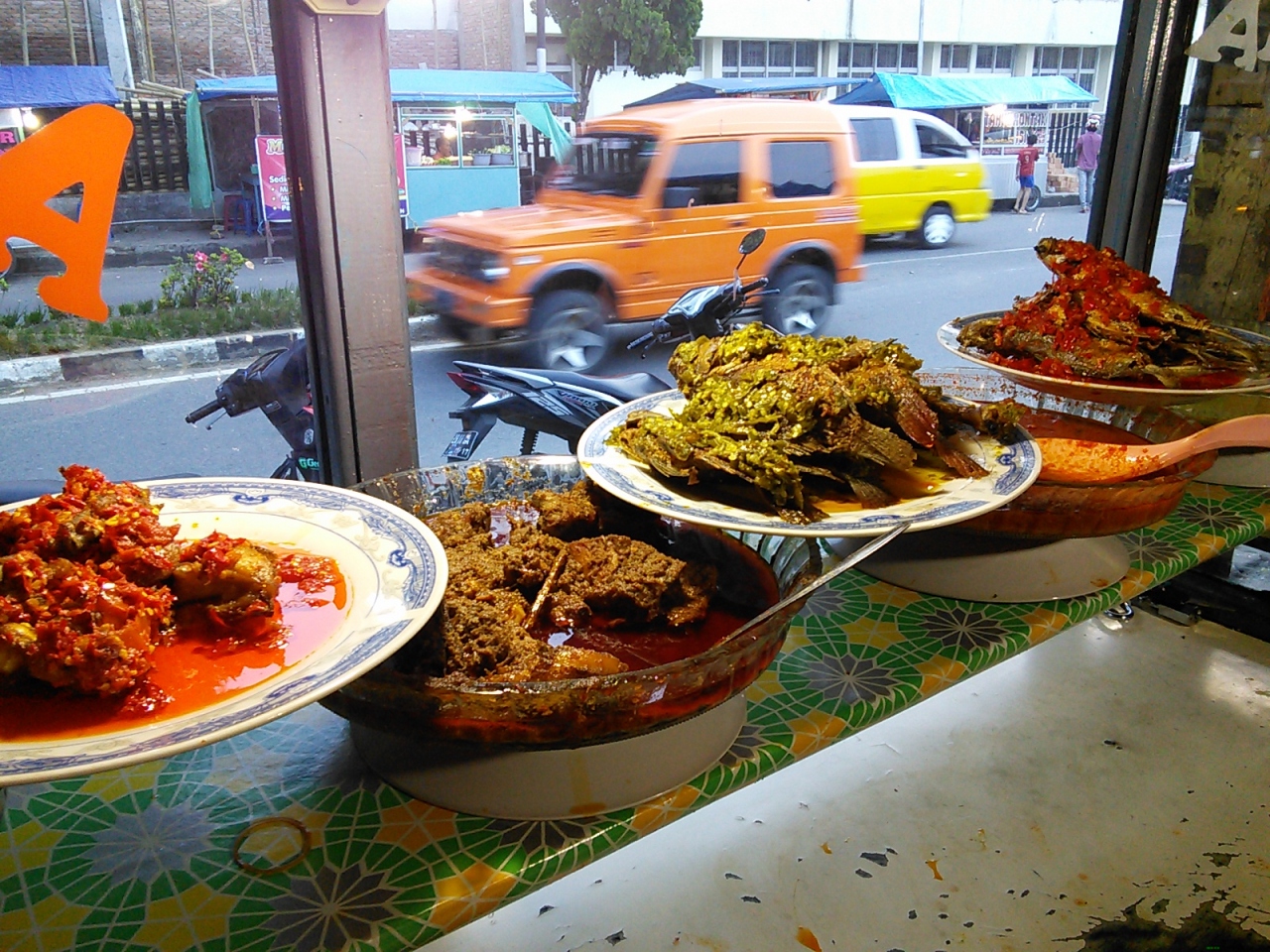 ガラス窓には「AMPERA 10000」と書かれています。AMPERA (アンペラ)とは西スマトラのスラングで“安価な”という意味。そう、ここはRp10000で飯が食える食堂です。Rp10000と言っても馬鹿にできません。皿に盛られたアヤムやイカンなどちゃんと1品付きます。しかもウマい!ただ、タンバ(ご飯のおかわり)がRp2000かかりますが…。ここで食べると他の店でRp15000で食べる気がしなくなります。昼食、夕食時には店内は満員。超おすすめの食堂です。- 旅行時期