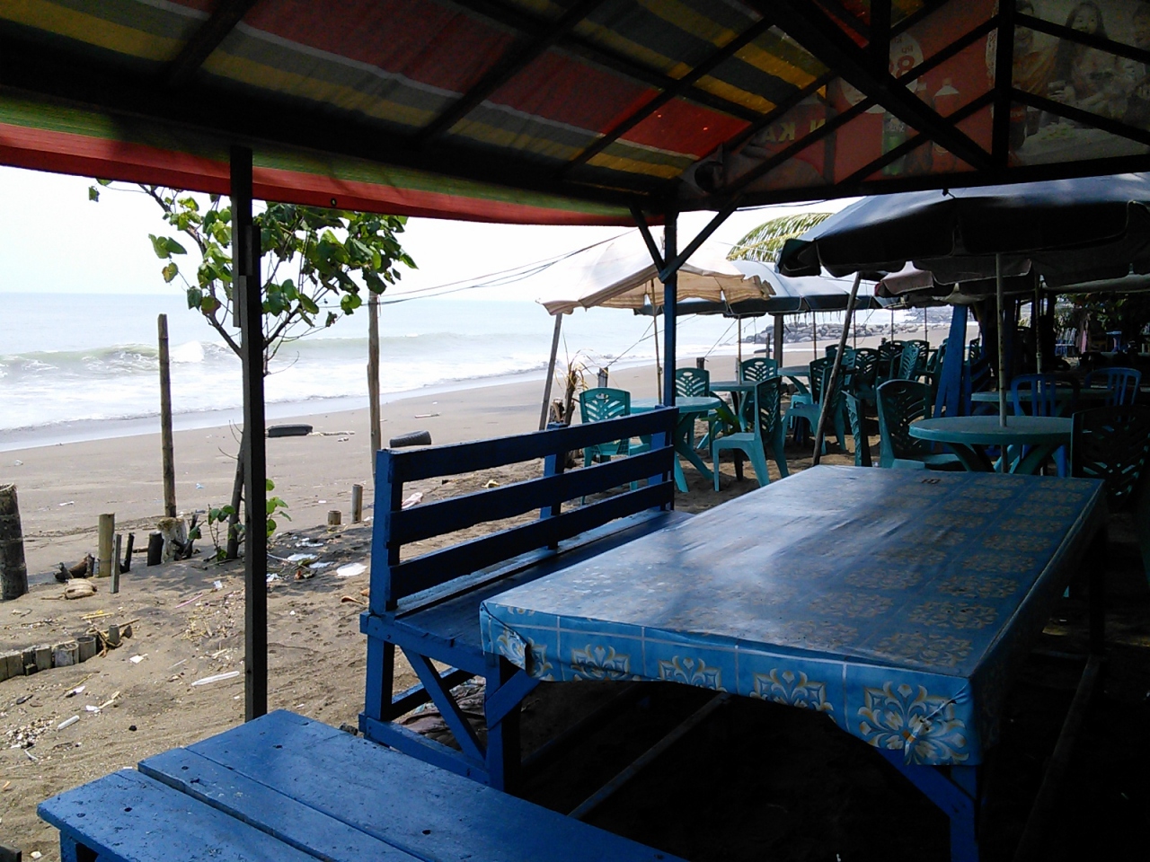ビーチと言うよりは“海岸”と言ったほうが正確かもしれません。ゴミだらけで水もきれいではありません。黒砂であるのも見た目に影響していると思います。それでも海岸沿いのJalan Samudraには食堂やカフェがずらりと並んでいます。多くの店が浜辺にイスやテーブルを出していて夕方には観光客や地元民がくつろぎにやって来ます。若者たちが水に浸かりながらビーチサッカーに興じているのも見れると思います。数は少ないですがビールを飲んでいる人も見かけました。