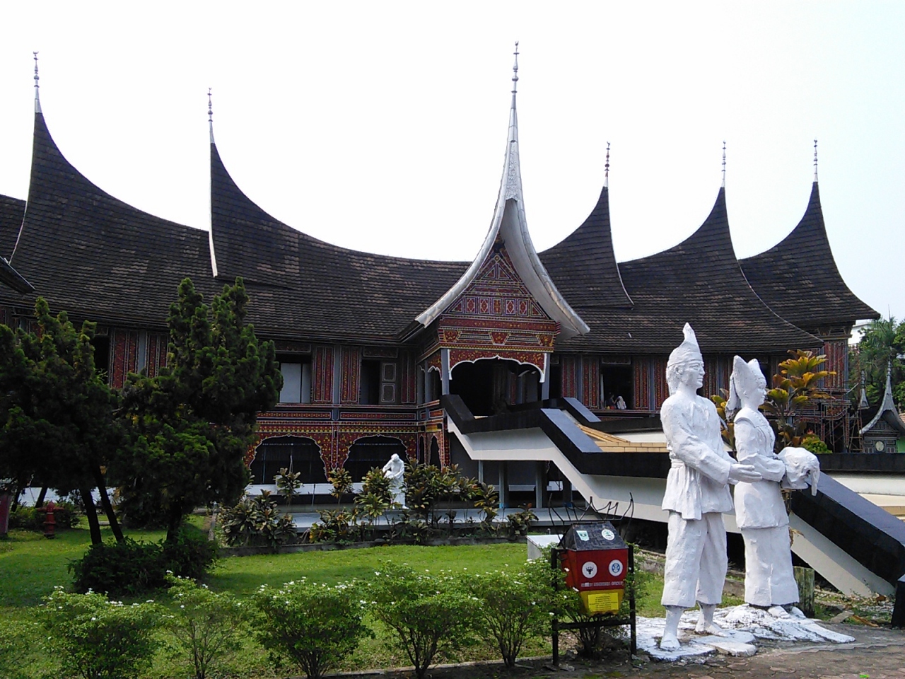 大きな公園の中にあります。公園の入口は南側のJalan Gerejaにありチケットカウンターがあり入場料はRp2000。しかしJalan Diponegoro側のゲートが解放されており普通に“無料で”入れました。博物館自体の建物がミンカバウ族の伝統家屋を模していてなかなか見応えがあります。2階は伝統的な結婚式のセットと年代物のバティック、1階は西スマトラの文化が紹介されておりスペースはさほど広くはありませんが古民具や衣装、装飾品、楽器、武器、動物標本など展示品は多岐にわたり充実しています。