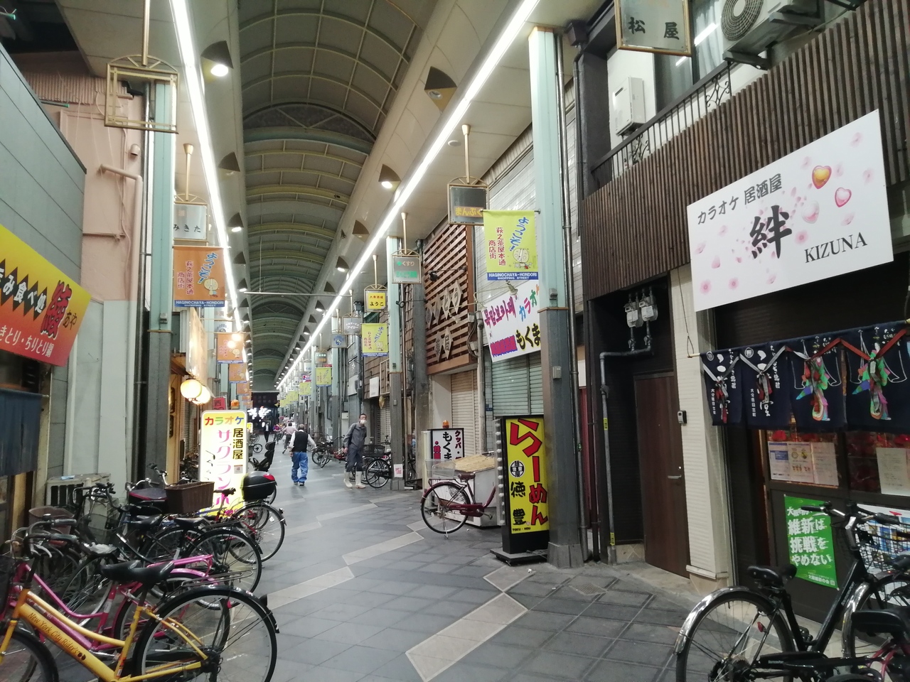 阪堺電気軌道今池駅から西に延びる商店街。昭和の下町情緒があふれています。庶民的でリーズナブルな飲食店が多く、特にカラオケ居酒屋が多い。独特の雰囲気で一見にはやや敷居が高そうですが…。西成という土地柄ですが、夜でも明るく妖しい感じはあまり感じません。