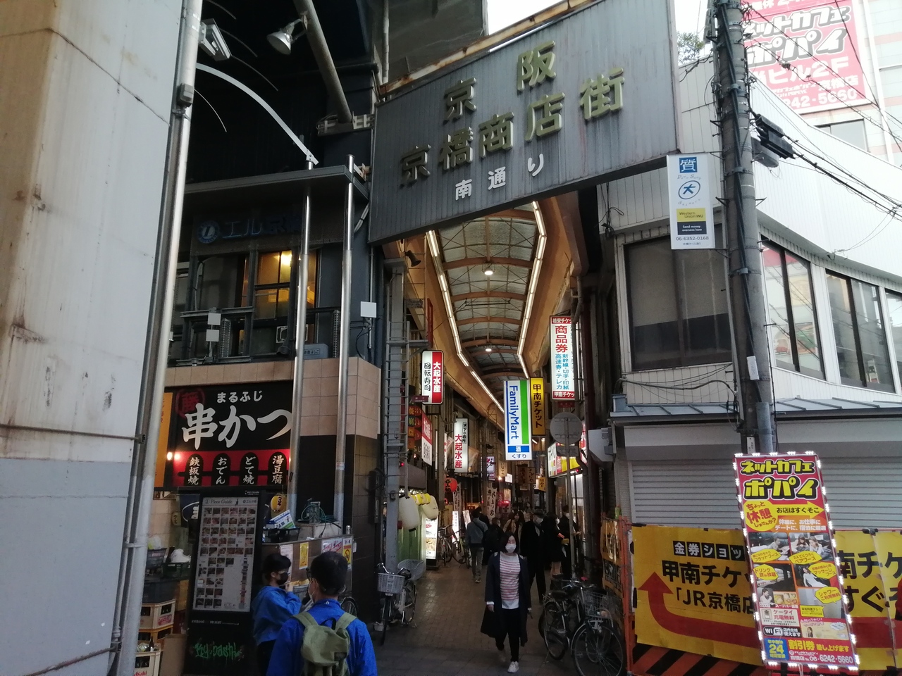 JR京橋駅の東側、南北に延びるわずか50mほどの商店街。京橋駅周辺は繁華街が無秩序に広がっており、商店街もいつくか存在しますが、なぜこんな小さな商店街が存在するのか?みんな一緒にまとまればいいと思うのですが…。大人の事情というやつでしょうか。大きなお世話ですね。南端のT字路の左側には、“The 京橋”と言える立ち飲み屋が並んでいます。