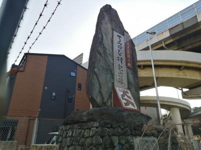 阪神高速道路の阿倍野入口にあります。高さ5mほどの大きな石碑で「上方演芸発祥之地 てんのじ村記念碑」と刻まれています。戦前から戦後にかけてこの周辺には漫才師などの演芸人が300人も暮らしていたようです。まさに上方演芸発祥の地とも呼べる場所です。
