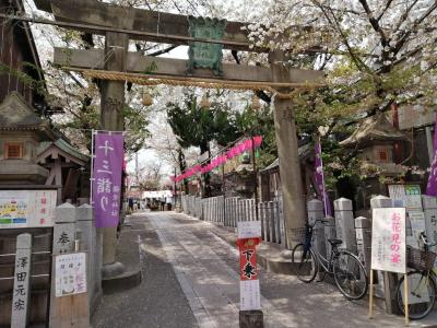 生野区にある大阪コリアンタウン(御幸通商店街)近くにある仁徳天皇に所縁のある神社。境内でお祭りが行われていたのでちょっと覗いてみました。私もビールを買って参加…と行きたいところでしたが、お祭りではなく町内会主催のお花見会で部外者は参加不可…。一般参拝者だって訪れるのに、これだけ境内を占拠しといてそりゃないよ。と思いましたが仕方ない。ささっと参拝を済ませ、立ち去りました。