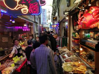 鶴橋駅を出るともうそこは韓国です。薄暗く狭い通りに韓国食材の店やレストランがびっしり。スーパーでは決してお目にかかれない様々な種類のキムチ、そしてチヂミやキムパも店頭に並んでる。テンション上がります。その場で食べられる屋台風の店もあり酒も飲めます。トッポギやすじポッカがうますぎる。呑んべえにもたまらなく魅力のある市場です。