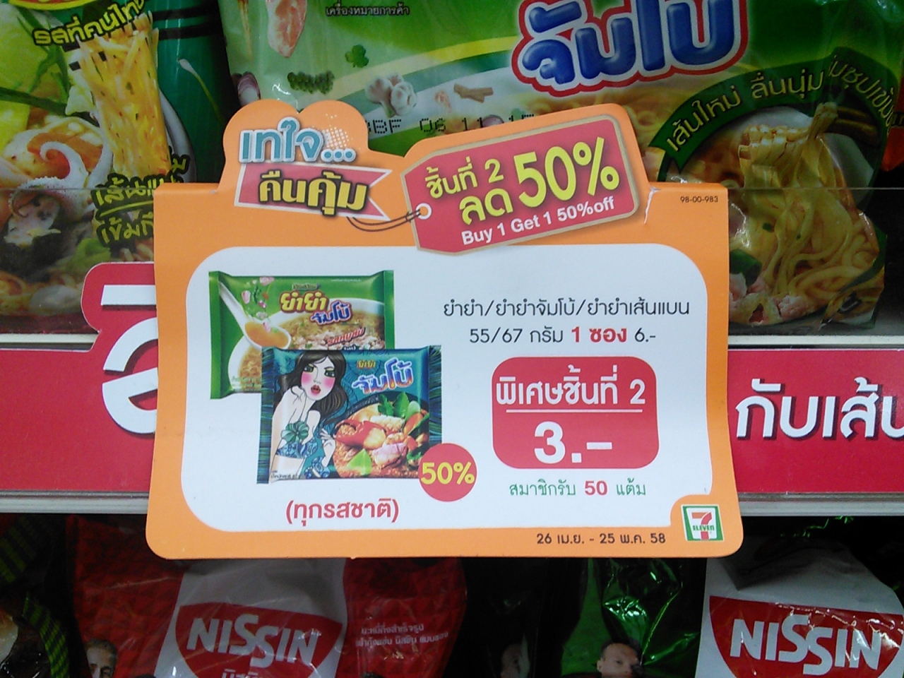 その商品にはその旨の表示があります。例えば1個買うともう1個おまけでもらえたり、2個買うと2個目が半額になったり、3個買うと1個おまけでもらえたりと結構お得です。分からなかったら店員に聞いてみましょう。その商品をレジに持っていくと割り引き料金で計算されますがたまにこちらから言わないと割り引きにならない時があるので注意が必要です。- 旅行時期