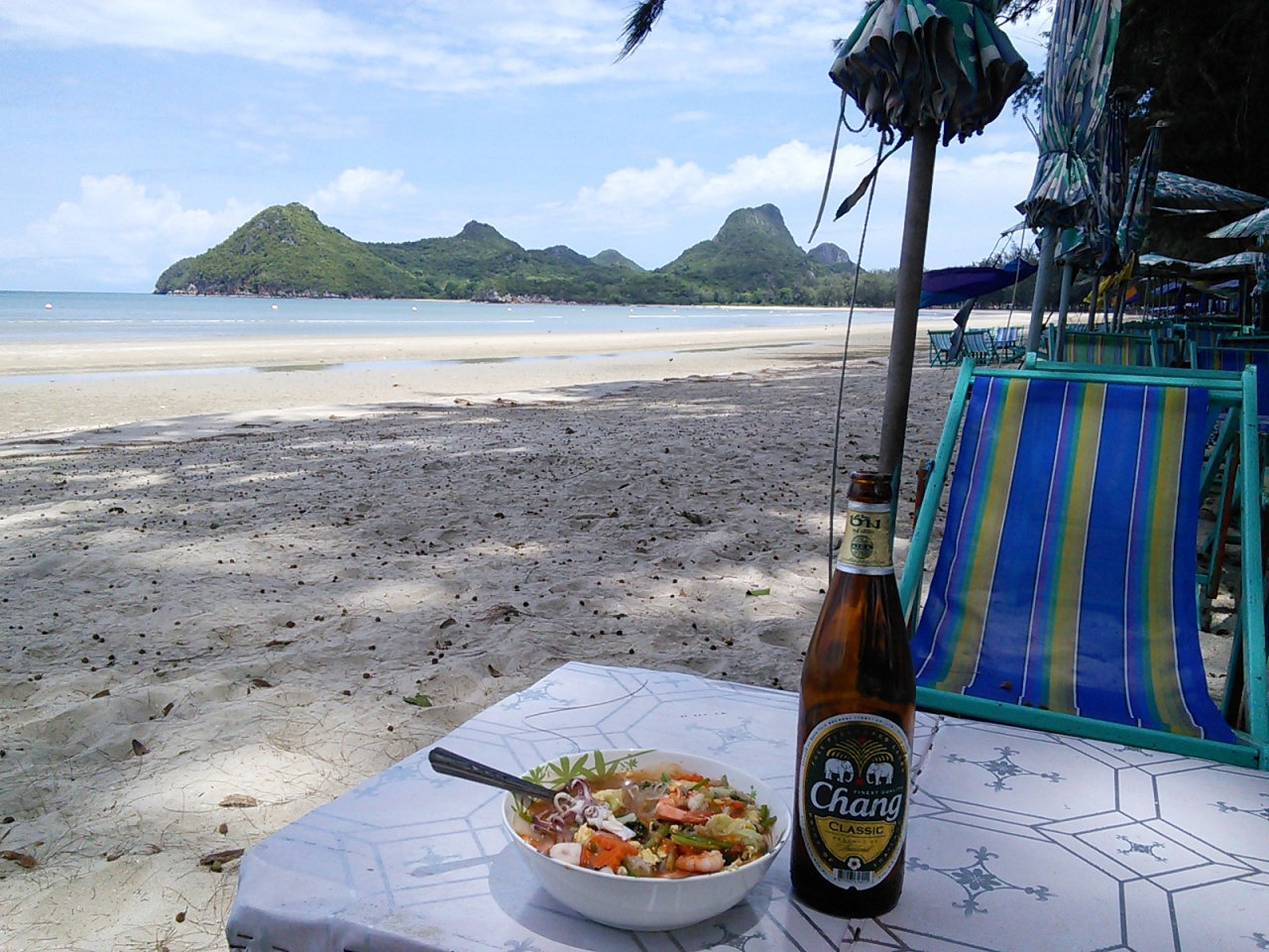 遠浅で泳ぐにはあまり適していませんがのんびりくつろぐにはとてもいい所です。浜辺にはデッキチェアとパラソル(使用料1人10B)か並び食事も注文できます。近くのフードコートから持ち込みも可能、もちろんアルコールも。