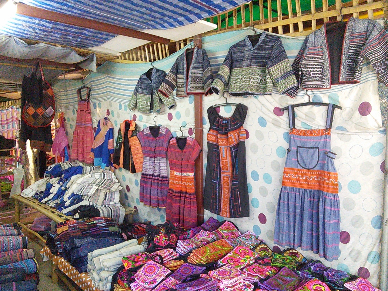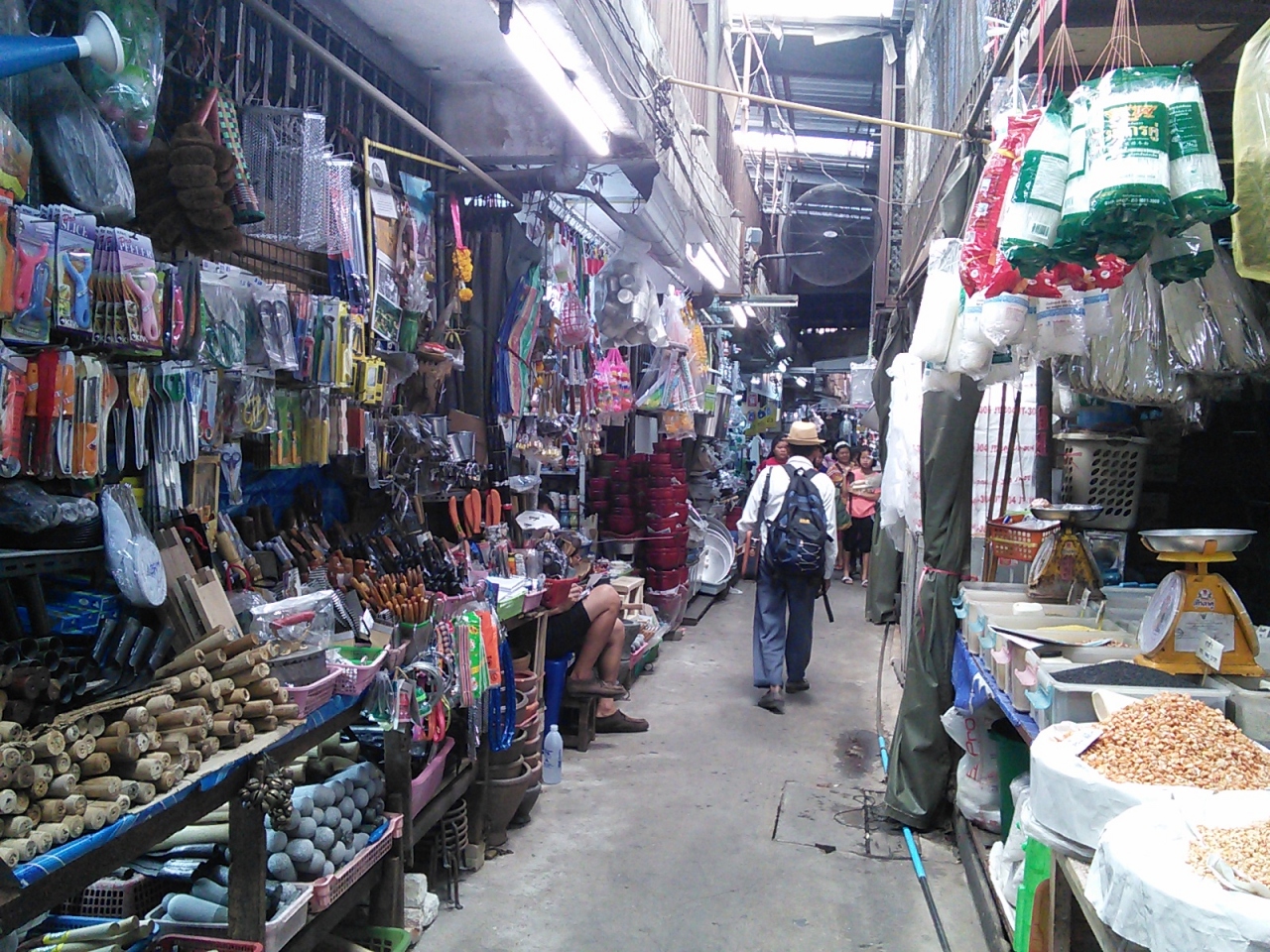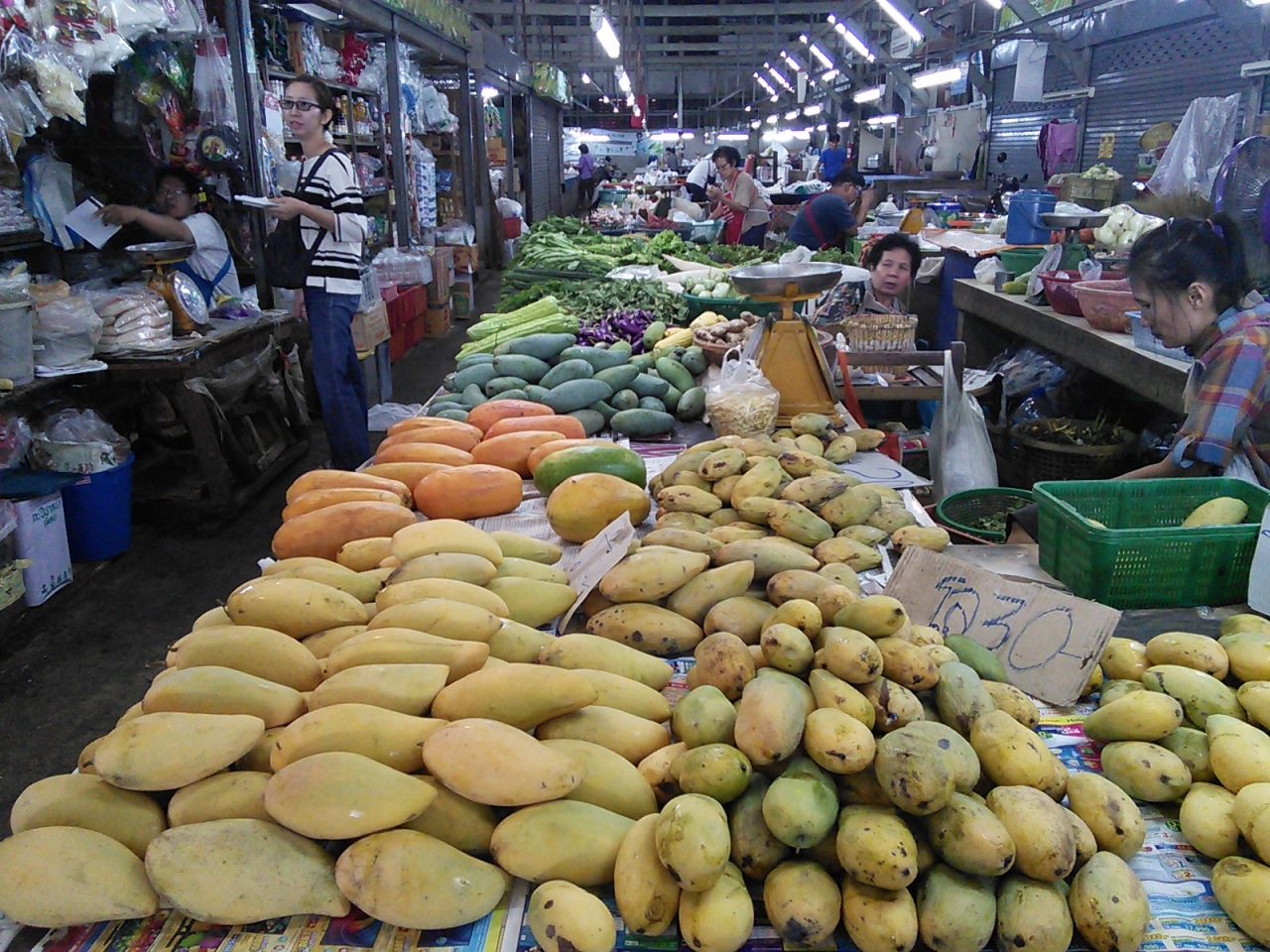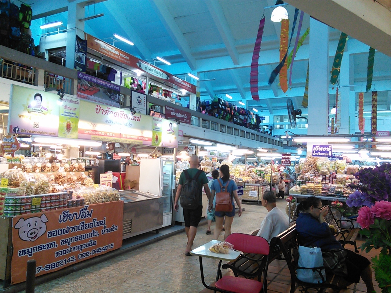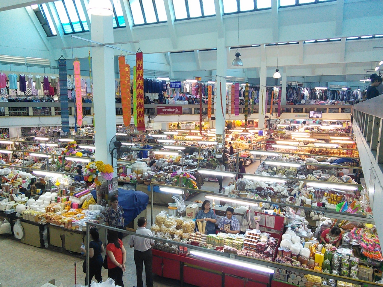おそらくチェンマイで一番大きなローカル市場だと思います。店の数も多く生活に必要なものは何でも揃うんじゃないかなと思えるほどです。中央吹き抜けの3階建てです。1階は衣類や食品が中心。お土産になりそうな北部特産のお茶やドライフルーツ、お菓子なども揃っています。フードコートっぽい食堂街もあります。2,3階はほぼ衣類、チープなコスメ売り場や食堂もあり。2階,3階から眺める市場の様子は圧巻、“アジアの市場”を肌で感じられます。ひとつ気になったのが天井から吊り下げられている大きな写真。昔のワローロット市場やその周辺のもののようですがなかなか洒落た演出だと思います。市場で働く人々の誇りと気概を感じました。