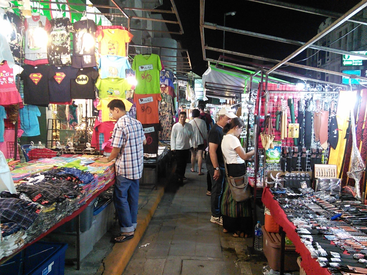 ここぞチェンマイの観光業の総本山的な場所です。観光客向けの土産物屋や飲食店が集まっています。常設営業の店もありますが夕方になれば通りには露店が並び、アヌサーン市場も出現します。フードコードもあり、とりあえずは楽しめます。土産物を買うには不自由しませんが旅行者にとっては完全にアウェイ、敵地ですから戦う必要があります。値段交渉は不可避でしょう。言い値で買えば別ですが…、