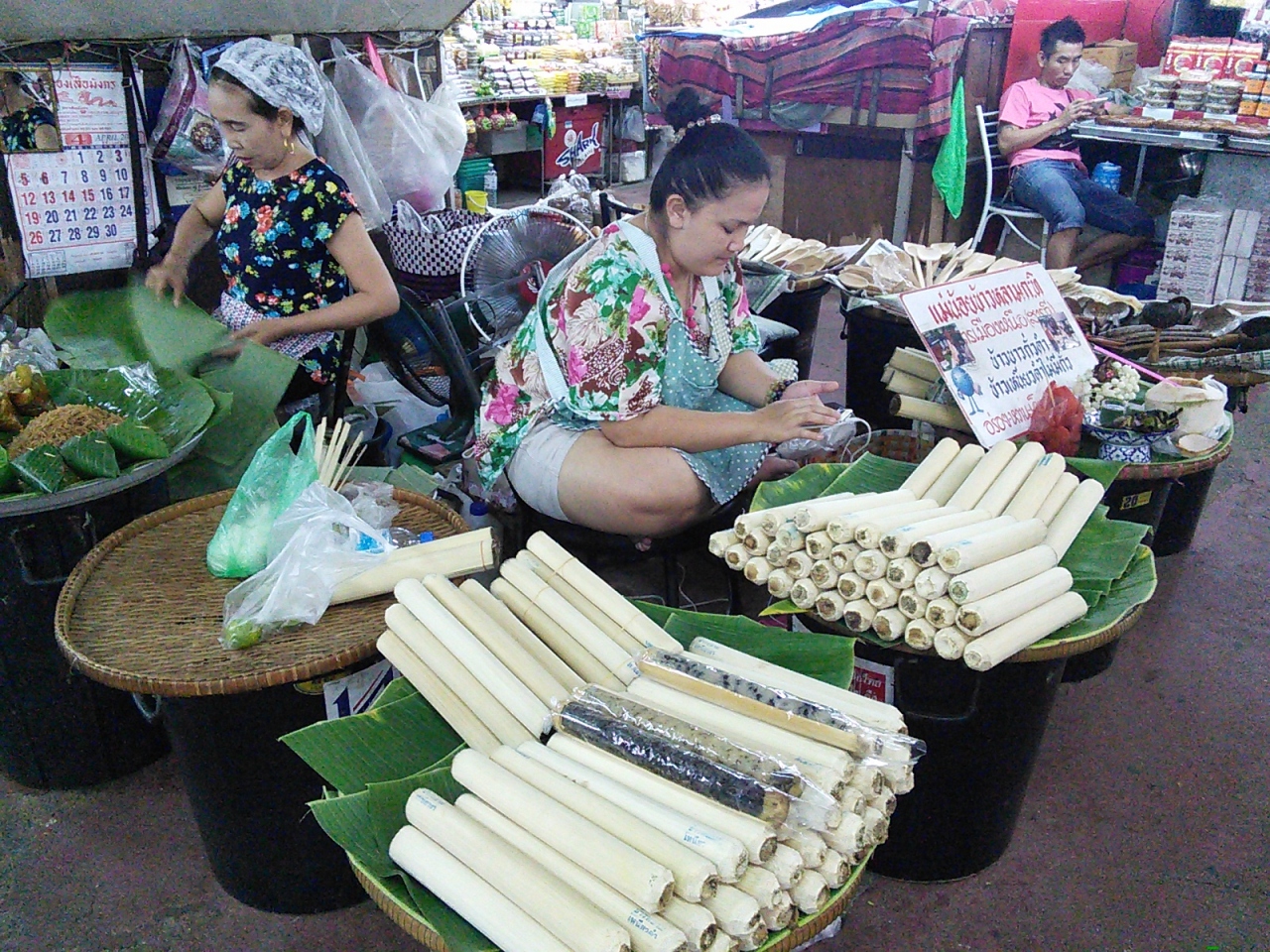 旧市街の北門、チャーンプアク門の前にあります。開かれる時間を聞くと朝4:00頃からと。うーん、そんな時間には行けないな。で8:00頃行ってみましたがもう片付け終わった店が何軒かありました。ピークには少し遅かったようですがまだまだやっています。お惣菜や果物、スイーツなどの店を眺めているとどれもおいしそうでテンションが上がります。皆さんも早起きして行ってみて下さい。