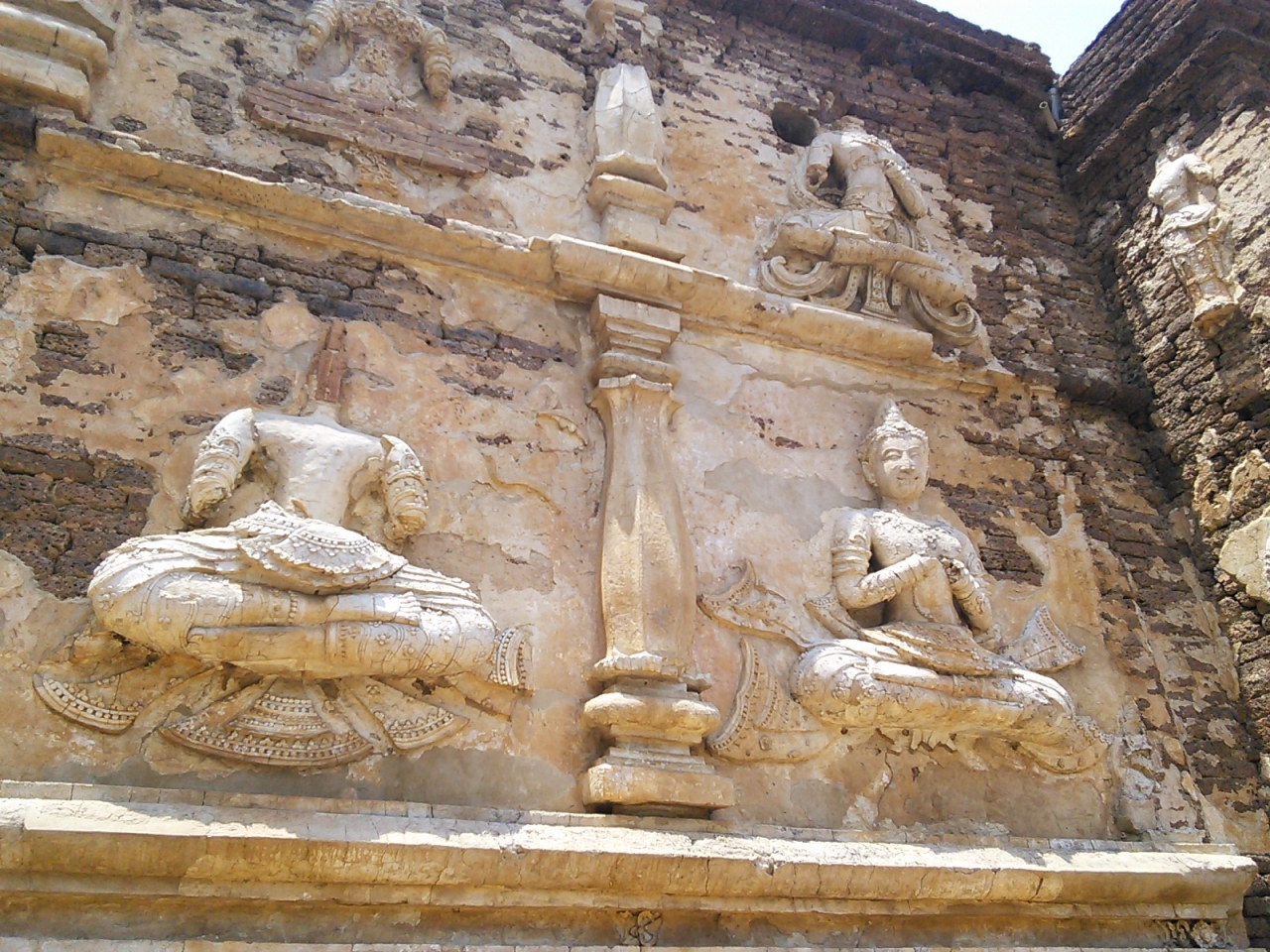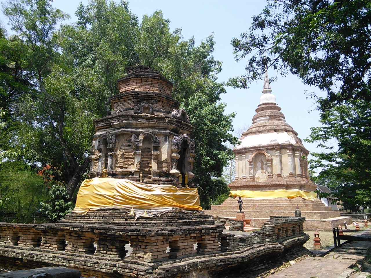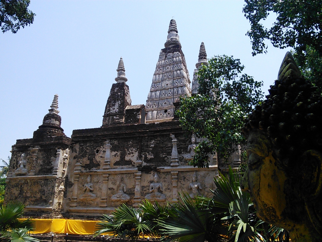 釈迦が悟りを開いた地、インドのブッダガヤにあるマハボディ寺院をモデルにしたとされていますがそれほどスケールは大きくありません。しかし名前のとおり7つ(チェット)の尖塔を持つ姿はタイでは珍しいと思います。。壁面には素晴らしい神々の彫刻が施されていますが半数ほどは壊れてしまっています。他にも広々とした敷地には仏塔がいくつか建てられており、さながら遺跡公園と言った感じの寺院です。