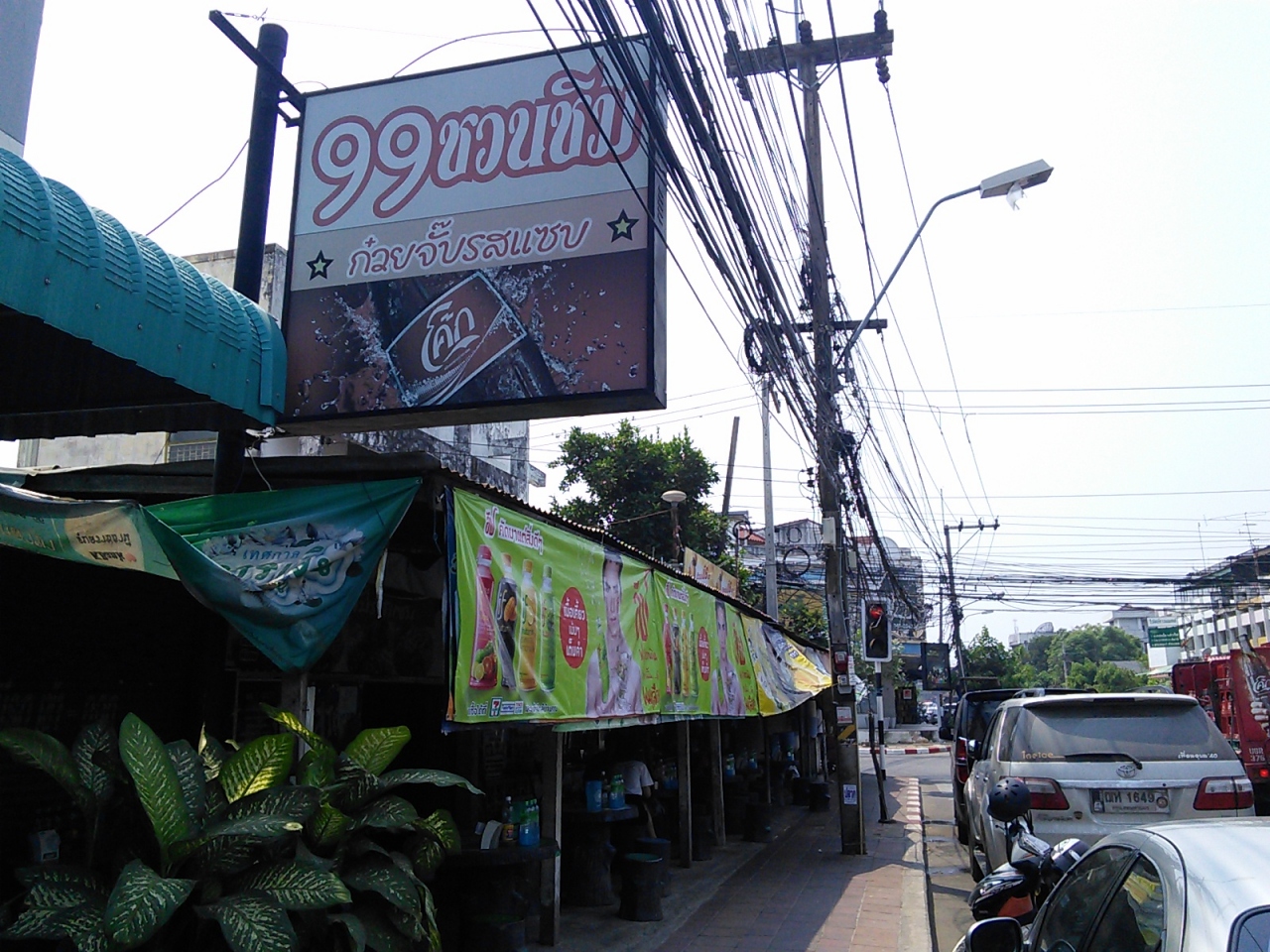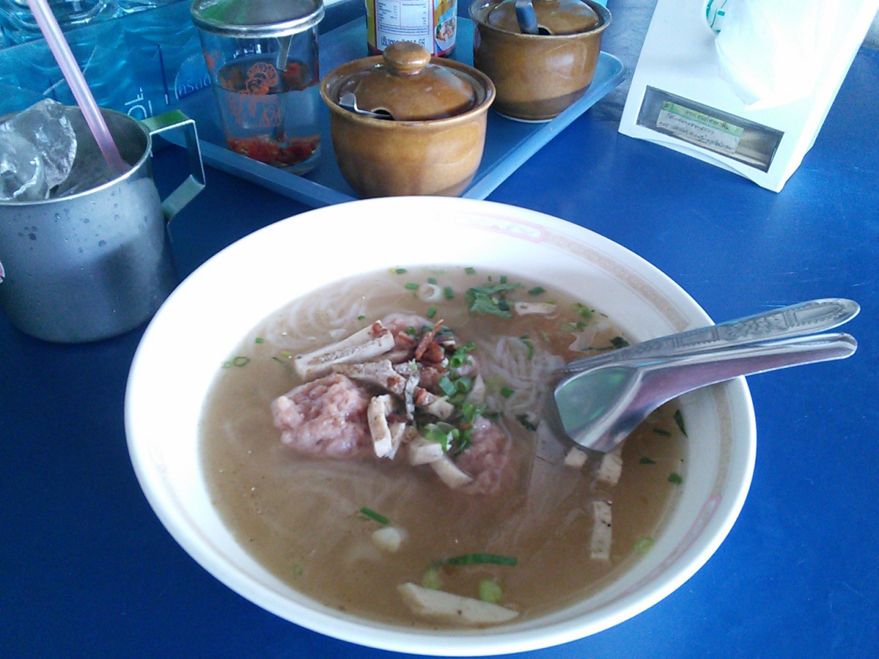 具は鶏肉や豚肉などから選べます。私は豚肉のツミレにしました。スープにはとろみがあり味は抜群にウマいです。ナンプラーや砂糖、とうがらしなどで調整しなくてもしっかりとコクがあります。これで一杯30B(大盛りは35B)。若干量は少ないですがタイなら仕方ないです。かなり人気店のようで昼時、夕時は結構混んでいます。昼からしか開かないので注意してください。
