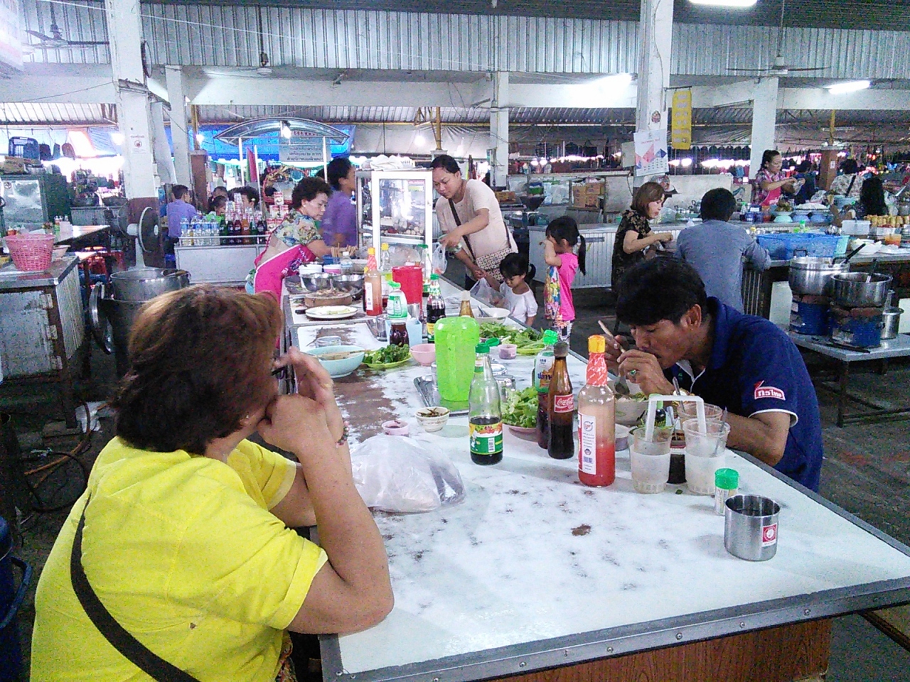トゥン シー ムアン公園南側に隣接する一画で毎日夕方から開かれるナイトマーケットです。屋台がずらっと並び、テーブルとイスが用意されているのでその場で食事ができます。ソムタム、カオニャオ、ガイヤーンから麺類、カオパット、パッタイ、カオマンガイなどがあります。あとフルーツ、スイーツも揃っています。35Bあれば食事ができますが、できれば2~3人で行ってシェアした方が安く楽しく食べられると思います。アルコールは販売していませんがすぐ目の前のセブンイレブンで買えます。持ち込みOKです。