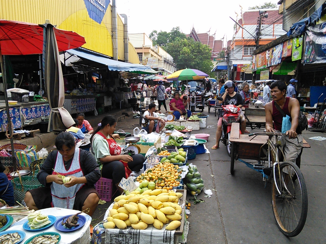 バスターミナル東側に隣接する市場です。いたって普通の市場ですが、やはりここは国境の町ノンカイ。ラオスでよく食べられているサンドイッチやフランスパンを見かけることができます。飲食コーナーではクイッティアオに混じってカオピアックセン(米粉から作ったモチモチとした麺)もあります。いずれもラオスが本場ですがラオスに行かない方も雰囲気は味わうことができます。