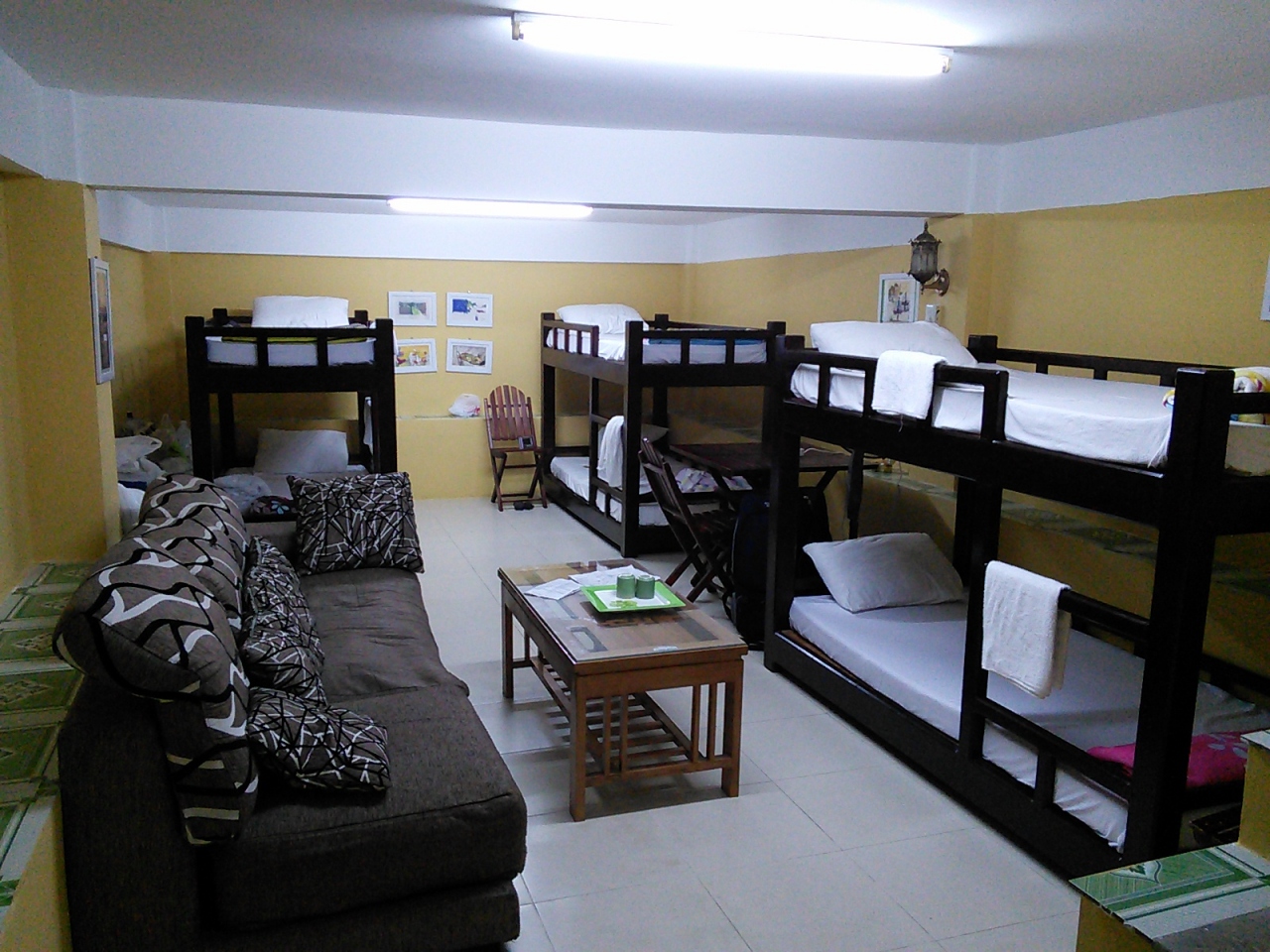 安く泊まりたい旅行者用にドミトリーもあります。2段ベッドが3つ。かなりゆったり目の造りで地下にあるにもかかわらず全く閉塞感はありません。もちろんホットシャワーが使え部屋の中でもFree WiFiがつながります。これで1ベッド3ドル。Aランクのドミだと思います。