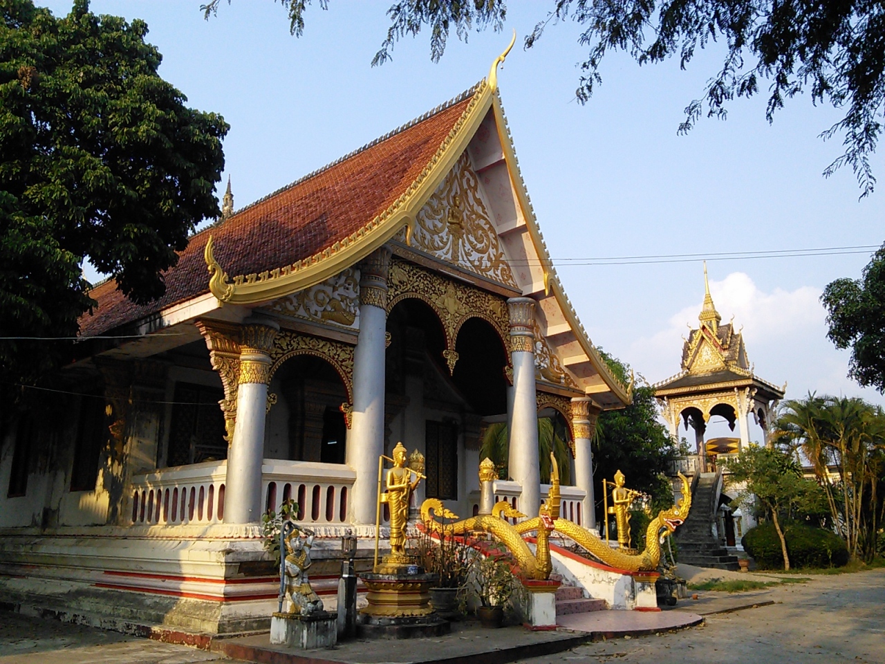 1542年に建てられた歴史のある寺院です。と同時にとても格式高い寺院でもあります。敷地内には若年僧のための仏教高校併設されており、新しく建てられたもののようでピッカピカ。趣のある寺院の建物とのギャップが現代らしいです。夕方に訪れるとちょうど下校時間。近郊の寺に帰るのでょうか、トゥクトゥクやソンテウに乗り合わしている微笑ましい光景に出会えました。