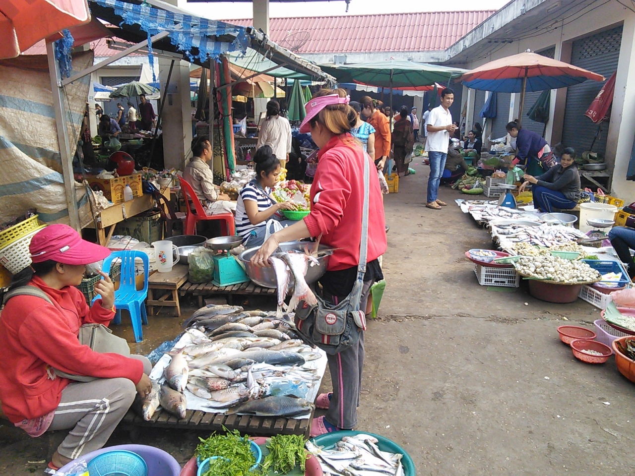 空港近くの国道13号線沿いにあるとっても小さなローカルな市場です。現在セドン川に架かるフレンチブリッジが改修中ですが渡し船を使えば歩いてもそう遠くはありません。市場の奥側ではフーやカオピアックセンが食べられます。サンドイッチも買えます。