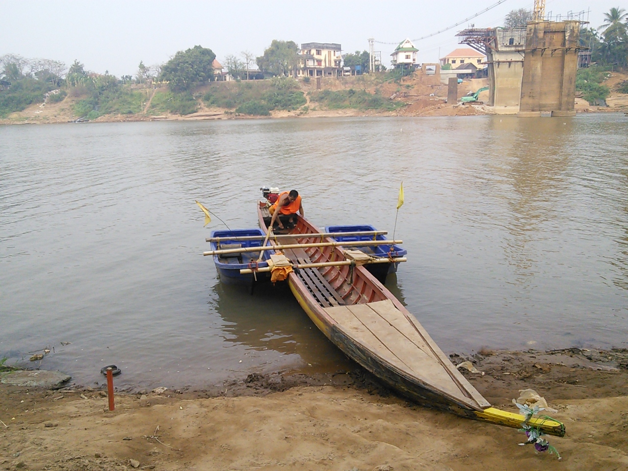 ちょっと向こう岸までという人にとっては不便極まりないところですがそこは大丈夫です。臨時の渡し船があります。乗り場はワット・ルアン内の川岸。どうも寺の僧侶達がやっているようで商売ではなく困っている人達のためという感じ。