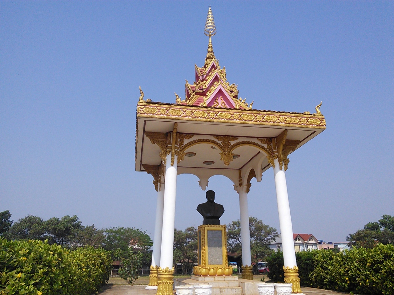 まず入口には金ピカのオッサン像が…、誰?って感じですがこれはラオス初代首相のカイソーン氏。ちなみに彼の息子はサワンナケート県の知事を勤めていました。