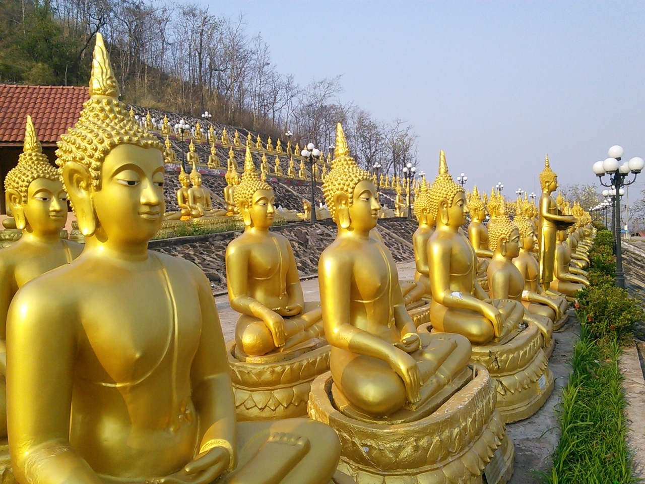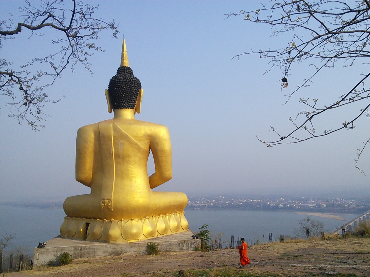 階段はすぐになくなり崖のような山道に。登れることは登れましたが道がわかりにくいのでこの階段はやめた方がいいです。正式な入口(登り口)は橋から200mほど行った左手にあります。こちらもやわな木組みの階段があり少し危なっかしいですが…。間近で見るとなるほどデカい仏像です。特に背後からのメコン川をバックにした眺めは素晴らしいです。橋もきれいに見えます。しっかり道路も整備されているのでトゥクトゥクやバイクでも行けます。- 旅行時期