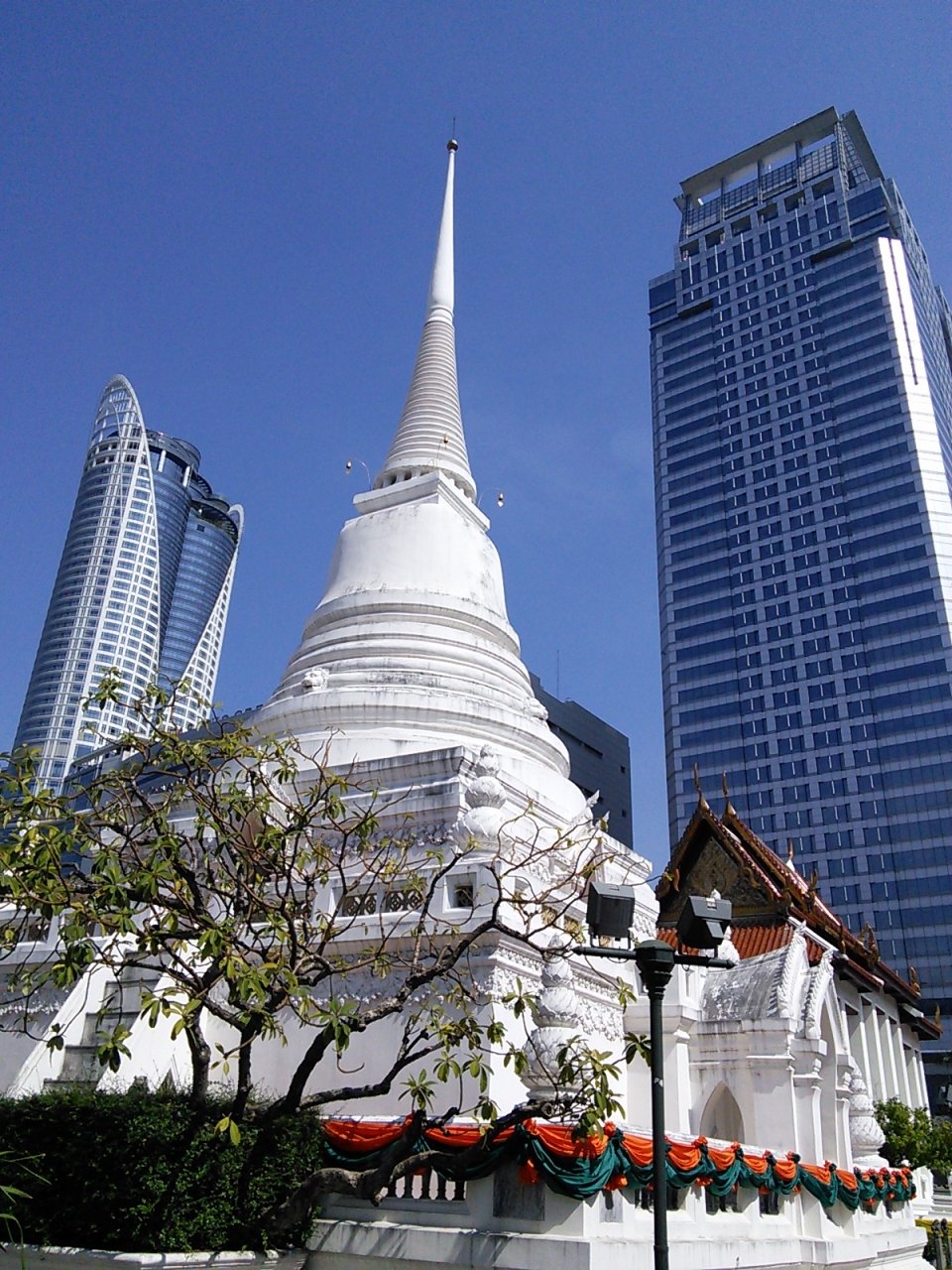 他の寺院では見られない高層ビルをバックにした寺院が眺められます。これもまたバンコクらしい景色のひとつです。- 旅行時期