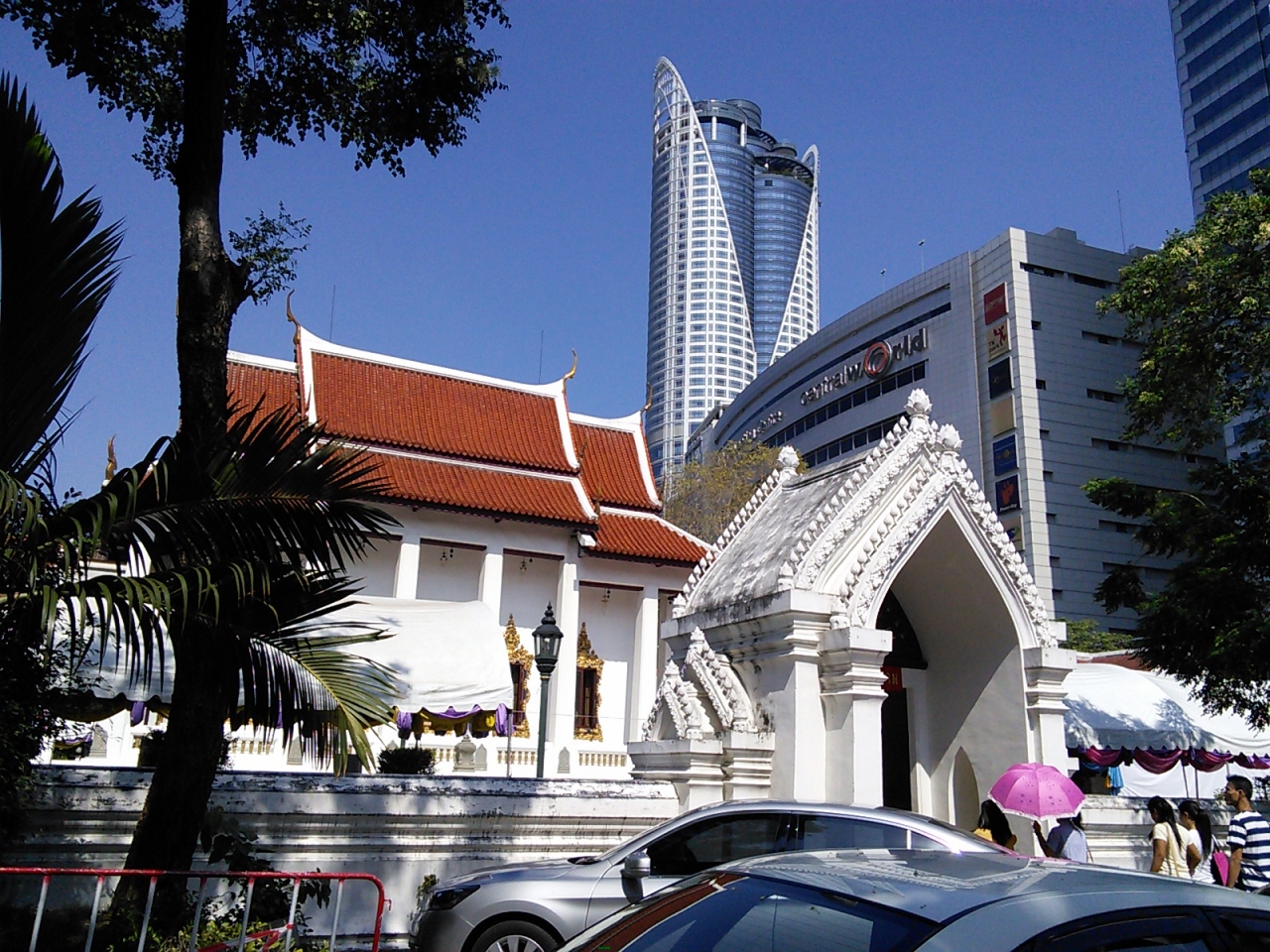 セントラルワールドとサイアムパラゴンの間にある寺院です。バンコクのど真ん中の一等地にある割には敷地は広くかなり贅沢な寺院とも言えます。しかし都心の宿命か多くの部分は駐車場として利用されてしまっています。