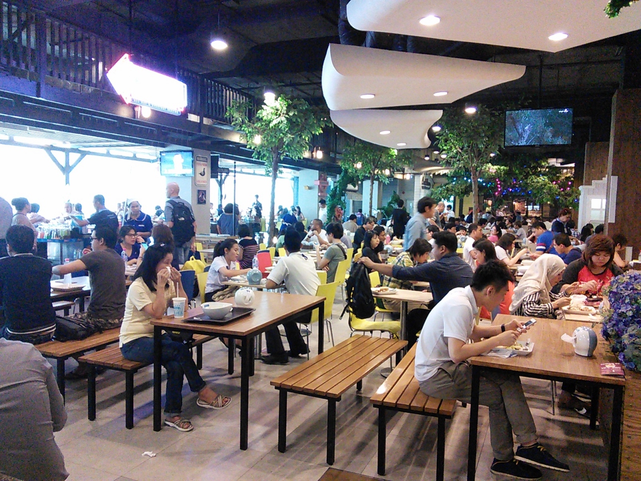 普通フードコートは上層階にあることが多いのですがこのフードコートは1階にあります。訪れたのが日曜日の昼だったためかとにかく人が多く空いてるテーブルもなく落ち着いて食事ができる状態ではなかったので食べるのをやめました。行く日時によっては忍耐と覚悟が必要ですのでそのつもりで行って下さい。